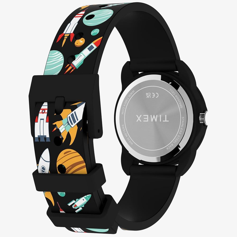 • 30 metre water resistance.Timexhttps://www.thbaker.co.uk/media/catalog/product/2/1/21-48-25155875_timex_02.jpghttps://www.thbaker.co.uk/media/catalog/product/2/1/21-48-25155875_timex_03.jpghttps://www.thbaker.co.uk/media/catalog/product/2/1/21-48-25155875_timex_04.jpghttps://www.thbaker.co.uk/media/catalog/product/2/1/21-48-25155875_timex_05.jpg0194366474053add-to-cartcondition:Nodisc_no_stock:Noex_display:NoNoNoNo214825155875TimexTW2Y59800ChildrensOfficial Timex Packaging12 Month Timex WarrantyFashionNoWatchBlackRubber StrapPlasticRound10.0mm30.0mmAnaloguePlasticBlackWhite30 metresQuartzPin BuckleNo StoneNo Stone22.0gNoNoNoNoNoNoNo{"name":"Klarna","text":"3 payments of \u00a311.67","imageUrl":"https:\/\/www.thbaker.co.uk\/media\/nosto\/klarna.png"}Timex Childrens Time Teacher NASA Space Themed Black Rubber Strap Watch21-48-251558752026-03-25 00:00:000[{"path":"\/Watches","url":"\/watches\/"},{"path":"\/Gifts","url":"\/gifts\/"},{"path":"\/Gifts\/Gifts For Children","url":"\/gifts-for-children\/"},{"path":"\/Watches\/Childrens Watches","url":"\/childrens-watches\/"},{"path":"\/Brands A-Z\/Timex","url":"\/timex-watches\/"},{"path":"\/Brands A-Z\/Timex\/Timex Analogue","url":"\/timex-analogue-watches\/"},{"path":"\/Watches\/Plastic Watches","url":"\/plastic-watches\/"},{"path":"\/Watches\/Quartz Watches","url":"\/quartz-watches\/"}]2026-03-25