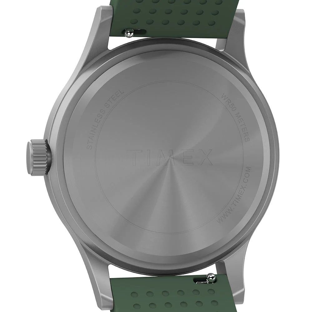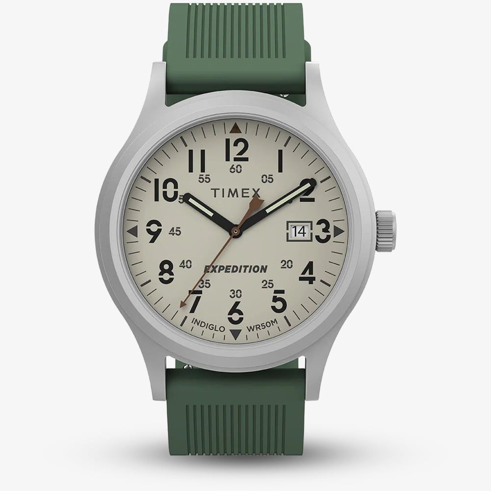 Sometimes, you just need a reliable companion ready for any adventure. This expertly updated classic field watch features a new design with a green textured strap made from soft silicone. It also boasts 50m water resistance, 12- or 24-hour time settings, a date window, and a distinctive arrow second hand.