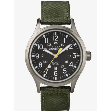 The Timex Mens Expedition Scout T49961D7 watch combines a 46mm round shaped plastic case and a camo print plastic strap with a traditional buckle. It has a black digital dial which is protected beneath plastic. Power is generated by the quartz movement. This model also has a water resistance of up to 200 metres.