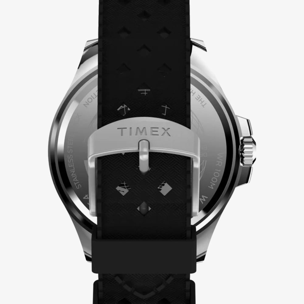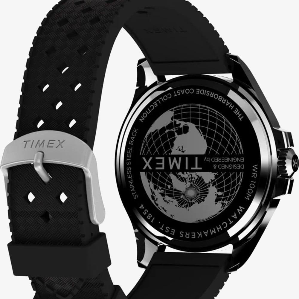 • Presented on a black rubber strap with traditional buckle.