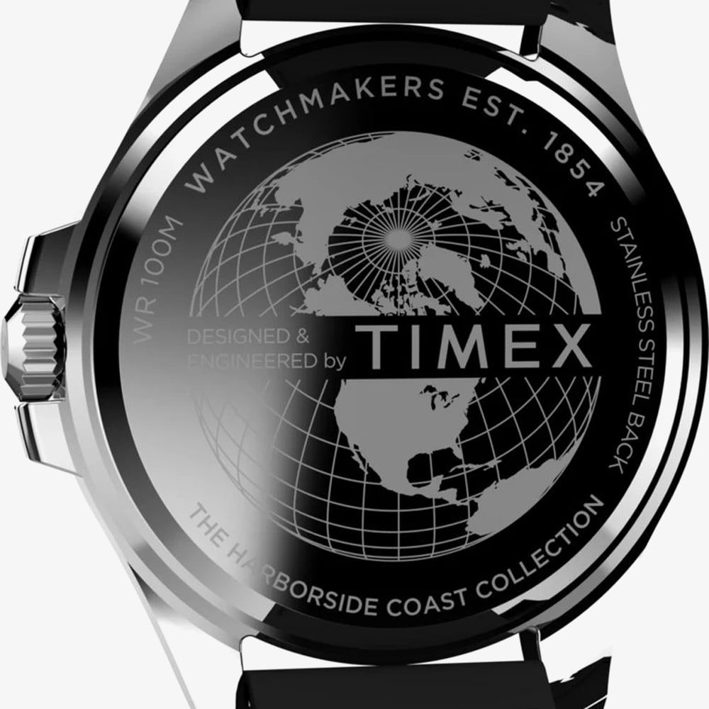 The Timex Men’s Harborside Coast TW2V91700 is a rugged and stylish timepiece crafted for those with a sense of adventure. It features a durable 43mm stainless steel case with 100-meter water resistance, making it suitable for both daily wear and water activities. The black synthetic rubber strap not only offers comfort but also adds a bold, sporty touch to the design. The dial showcases a striking combination of functional elegance, complete with a date display and luminescent markers and hands for visibility in low light. With a rotating bezel and reliable quartz movement, this Harborside Coast model is perfect for anyone seeking a versatile and adventure-ready watch.