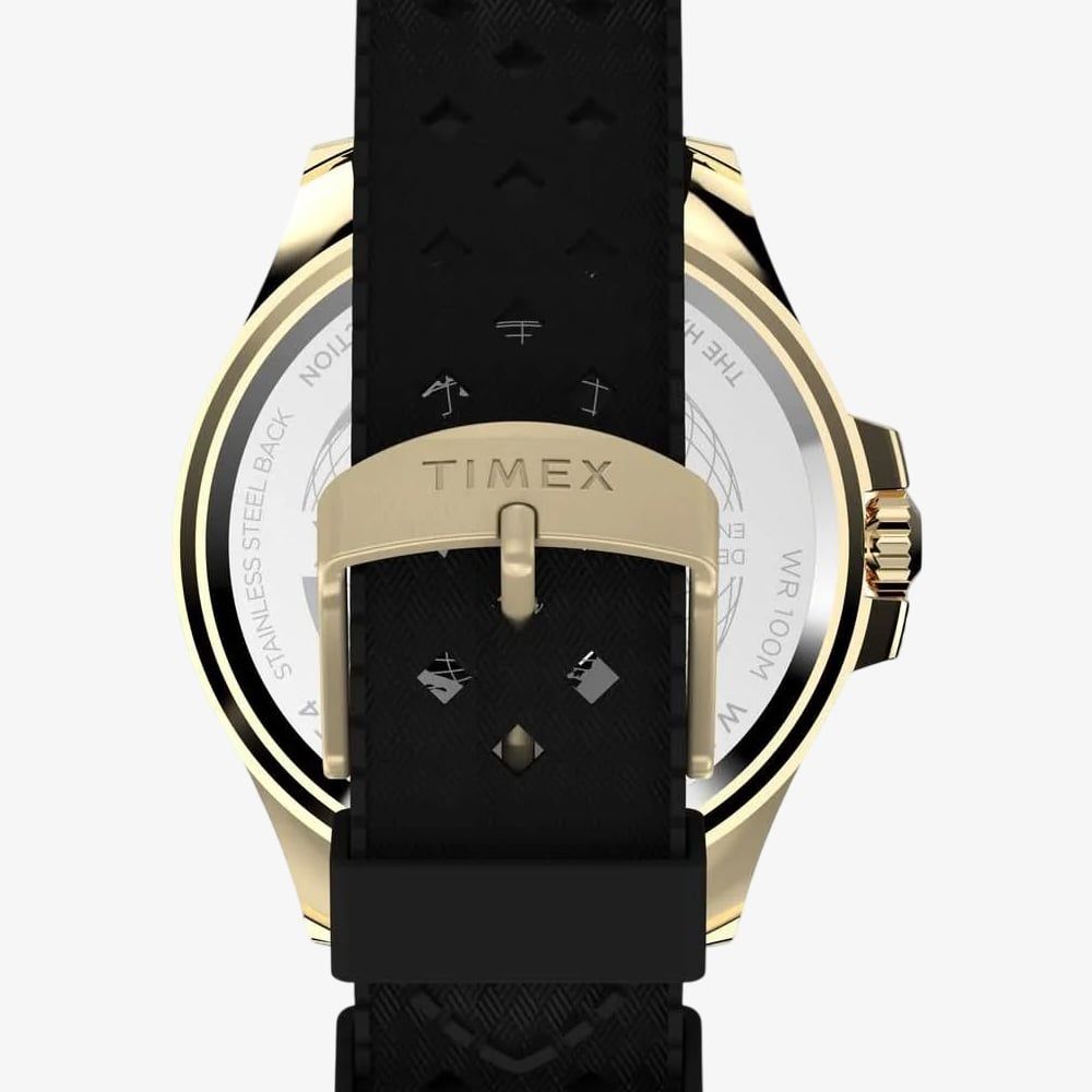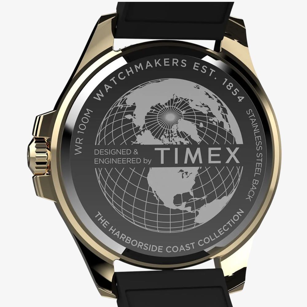 This distinguished timepiece showcases a polished gold-tone stainless steel case. The matching gold-tone bracelet offers a comfortable and secure fit on the wrist. The dial is designed for clarity, often featuring simple hour markers and hands, allowing the gold tones to take centre stage. Powered by a precise quartz movement, this Harborside model ensures reliable and accurate timekeeping. Its blend of classic design and warm gold finish makes it a versatile accessory.