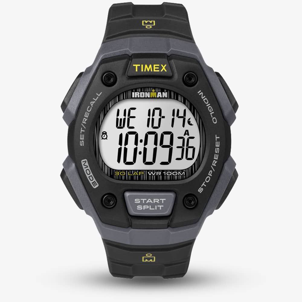The Timex Mens Ironman Alarm Chronograph TW5M09500 watch combines a 40mm square shaped plastic case and black rubber strap with a traditional buckle. It has a digital screen dial which is protected beneath mineral crystal glass. Power is generated by the quartz movement. This model also has a water resistance of up to 100 metres.