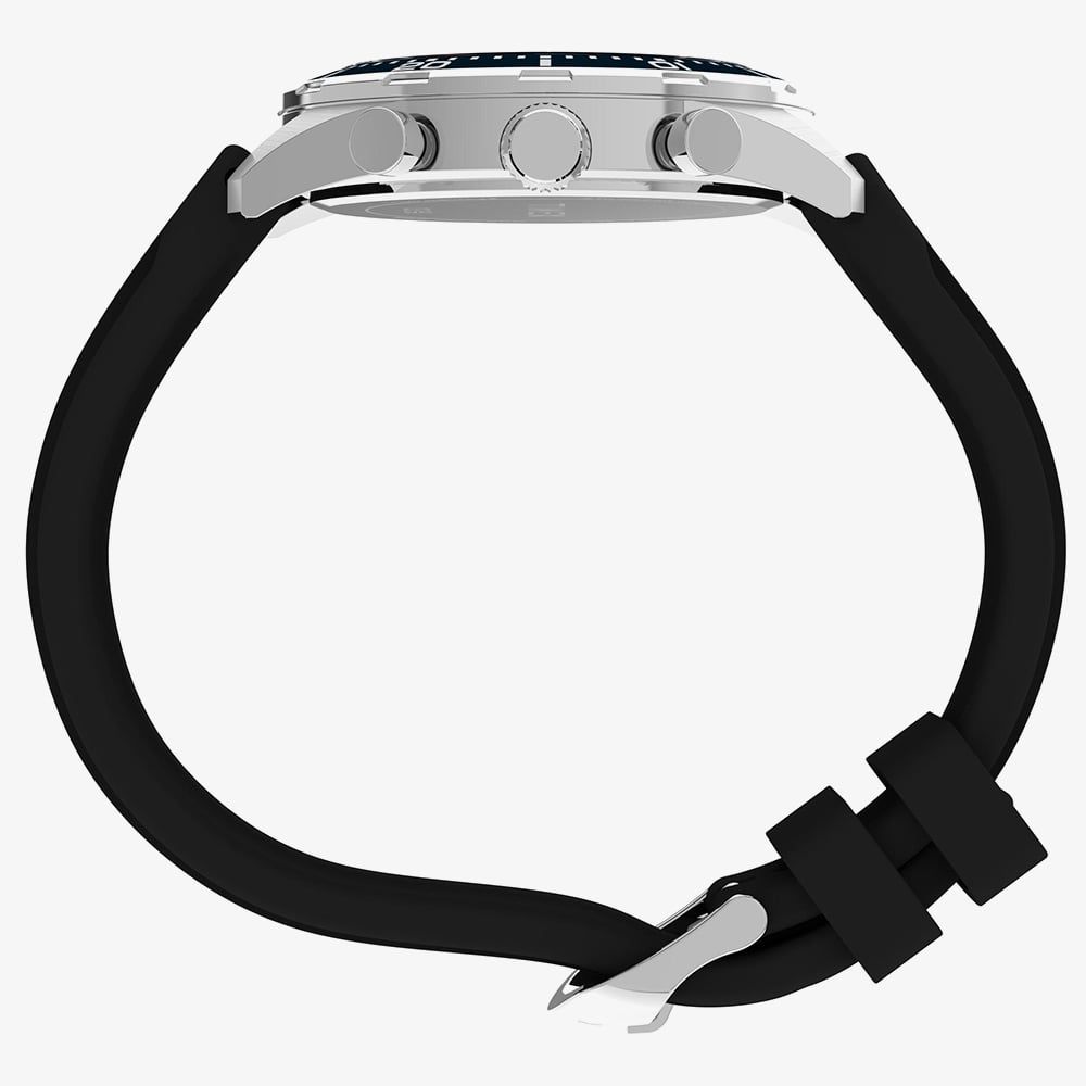 Dynamic and bold, the TW2Y62300 chronograph is built for those who lead an active, purposeful life. The 42mm case provides a sturdy foundation for the rich blue sunray dial, which offers a brilliant depth of colour. Polished pushers allow for easy operation of the chronograph features, while the notched bezel adds a rugged, nautical inspired character to the piece. To ensure maximum versatility and comfort, the watch is fitted with a sleek black silicone strap, which perfectly enhances its sporty profile and provides a secure fit during any activity.