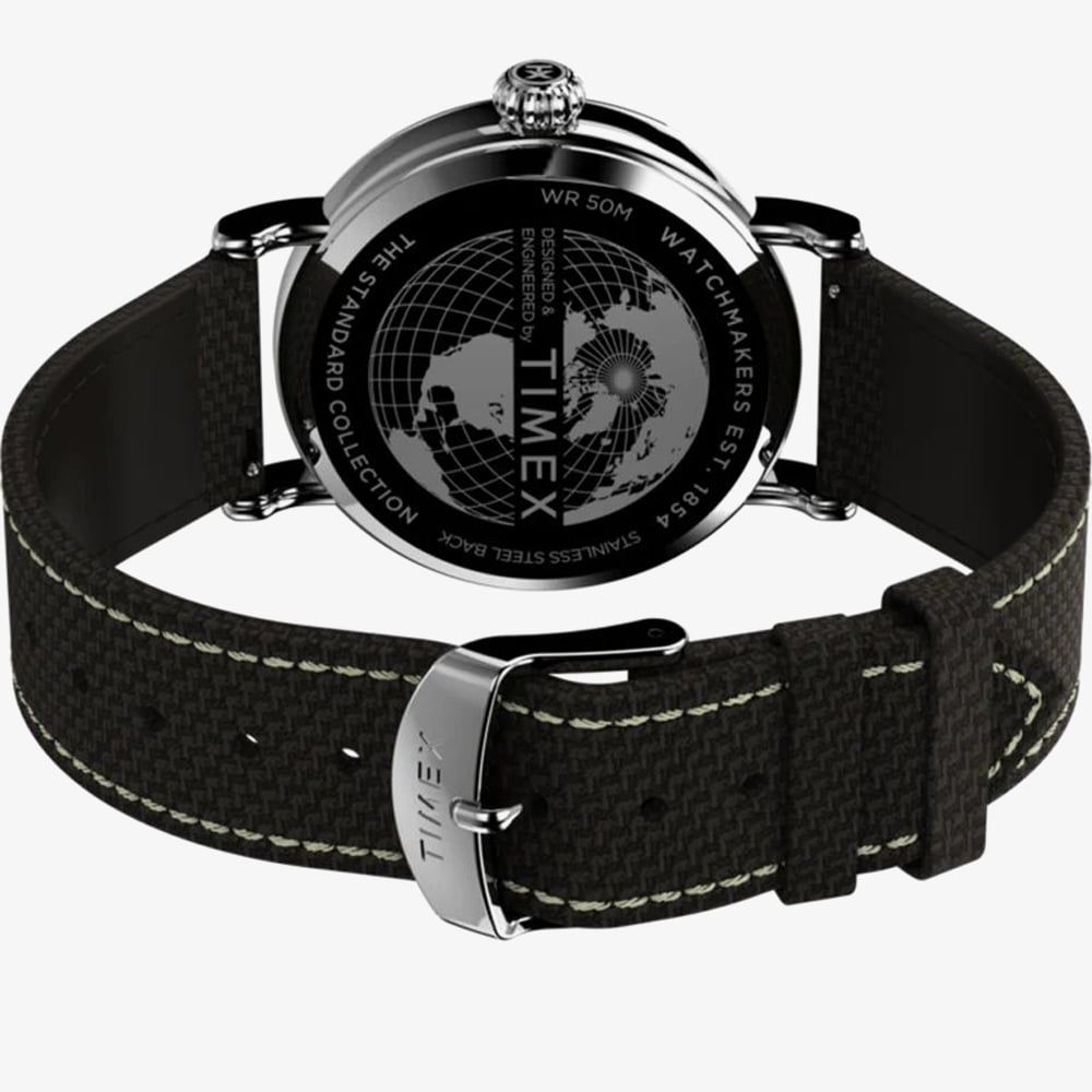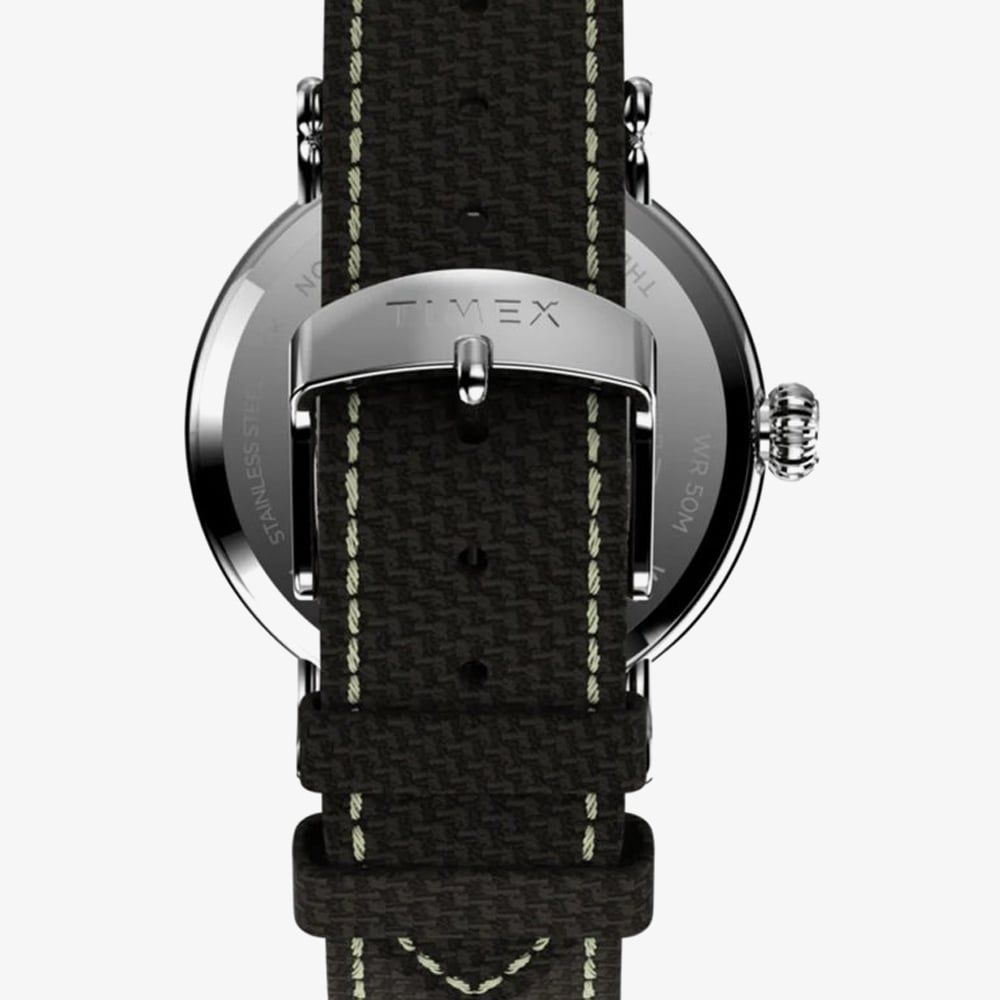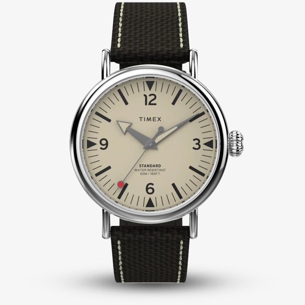 The Timex Standard 40mm Fabric Strap Watch offers a sleek, minimalist design with a stainless steel case and a white dial. Featuring quartz movement, it provides precise timekeeping. The fabric strap ensures comfort, while the watch is water-resistant up to 50 meters. Its classic look with batons hour markers makes it a versatile piece for both casual and formal wear.
