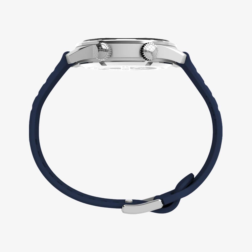 A bold and vibrant timepiece that brings a colourful boost to the classic dive watch style. Featuring a bright orange dial, this watch ensures you stand out with its easy-to-read markers and luminous hands, ensuring excellent visibility in all conditions. The watch is crafted with a durable stainless steel case and a unique blue rubber strap for comfort and flexibility. This watch blends sporty aesthetics with reliable functionality, making it a dynamic and versatile accessory.