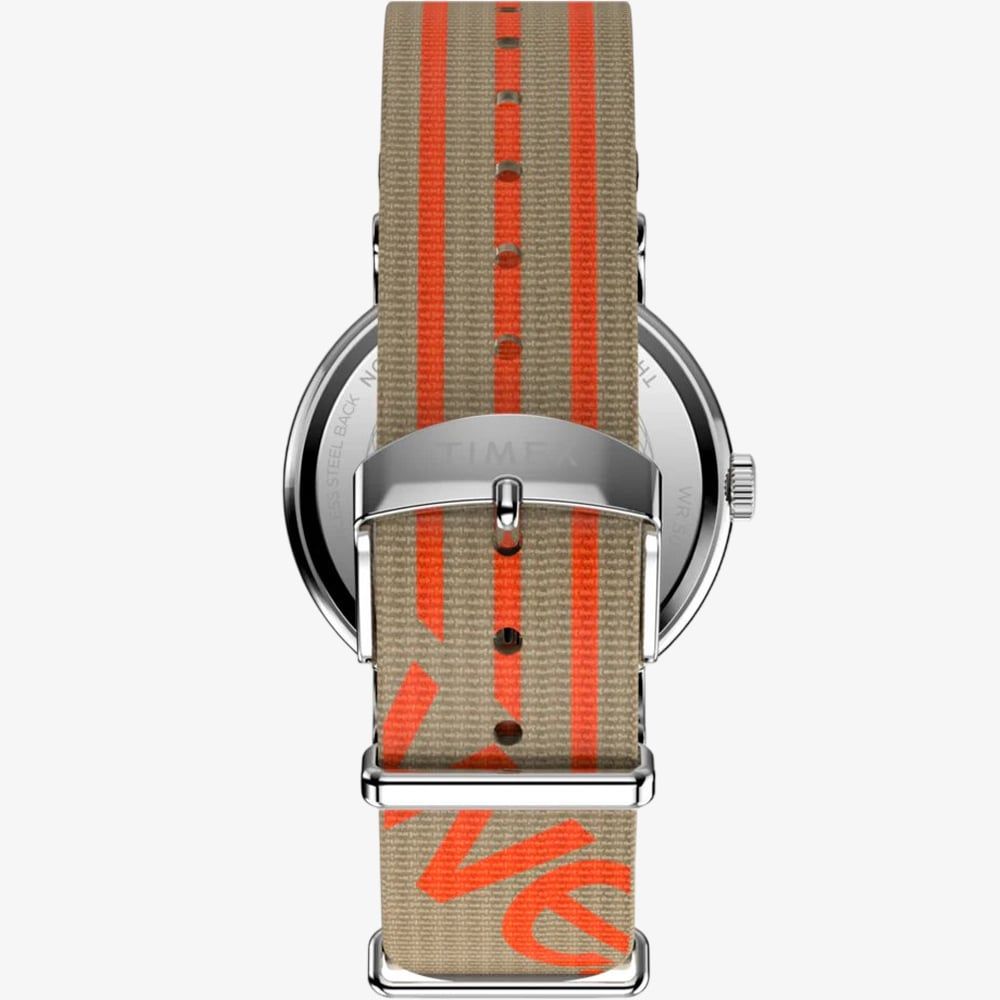 A fun, functional, and effortlessly stylish timepiece made for casual wear. Part of the popular Weekender collection, this watch is all about versatility and comfort. This watch features a clean white dial with easy-to-read Arabic numerals, housed in a sleek silver-tone case. Its standout feature is the vibrant orange fabric strap, adding a bold pop of colour that’s perfect for weekends, outdoor adventures, or making a statement on the go.