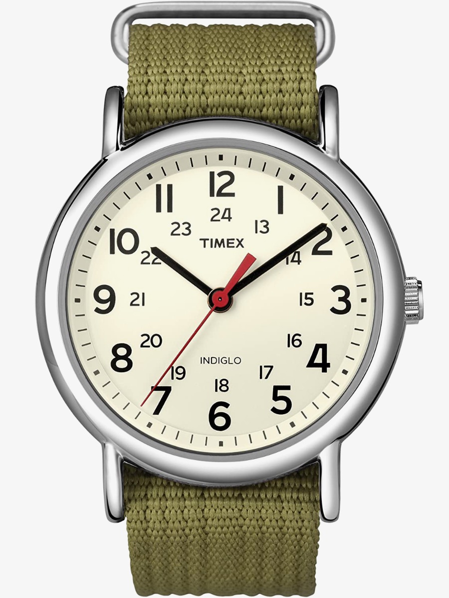 https://www.thbaker.co.uk/timex-mens-weekender-white-dial-watch-t2n651118977Timex Mens Weekender White Dial Watch T2N651https://www.thbaker.co.uk/media/catalog/product/2/1/21-55-418_02_1.jpg6060GBPInStock/Watches/Watches/Mens Watches/Watches/Quartz Watches/Brands A-Z/Timex/Timex Gents/Brands A-Z/Timex/Timex Analogue/eBay Category/Watches/Colourful Watches/Green Watches/Brands A-Z/Timex/Brands A-Z/Timex/Timex Weekender362636274679493042927311778142917928123626479242917375WEEKENDER SS GRN FAB SW The Timex Mens Weekender T2N651 watch White Dial T2N651 watch combines a 38mm round shaped stainless steel case and green fabric strap with a traditional buckle. It has a cream analogue dial which is protected beneath mineral crystal glass. Power is generated by the quartz movement. This model also has a water resistance of up to 30 metres.Timex753048388998add-to-cartcondition:Nodisc_no_stock:Noex_display:NoNoNoNo2155418TimexT2N651MensOfficial Timex Packaging12 Month Timex WarrantyNoWatchGreenFabric StrapStainless SteelRound9.0mm38mmAnalogueMineral Crystal GlassCream30 metresQuartzPin BuckleNoNoNoNoNoNoNo{"name":"Klarna","text":"3 payments of \u00a320","imageUrl":"https:\/\/www.thbaker.co.uk\/media\/nosto\/klarna.png"}Timex Mens Weekender White Dial Watch21-55-4182022-05-25 00:00:0002022-05-25