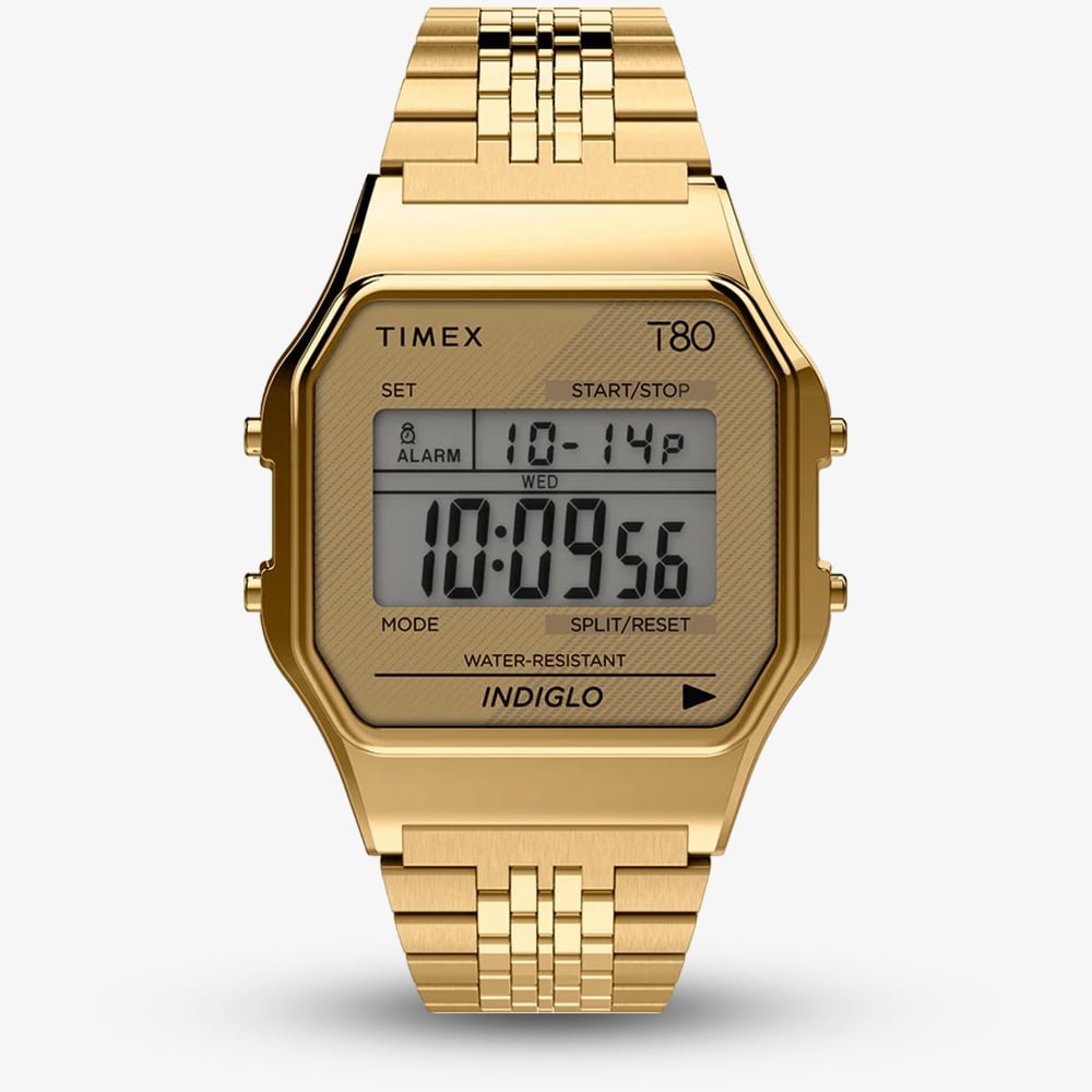 The Timex TW2R79200 combines a sleek gold-tone resin case with a digital display, providing clear day and date readings. The polished finish and stainless steel bracelet add a touch of elegance. Its 30-meter water resistance and acrylic lens make it durable for daily wear. With a self-adjust clasp for convenience, it's a versatile and functional timepiece.