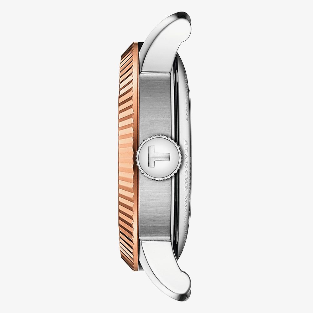 A supple black leather strap grounds the design in classic elegance, making it an ideal choice for those who appreciate understated luxury. Internally, the T932.207.46.046.00 houses a precise automatic movement, offering a reliable power reserve that honours the brand's long-standing commitment to mechanical excellence. This watch is splash resistant, making it perfectly suited for the discerning wearer who values a timepiece that carries the weight of history while meeting the demands of a modern lifestyle.