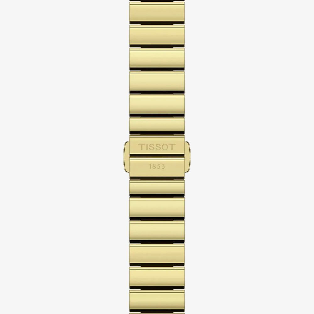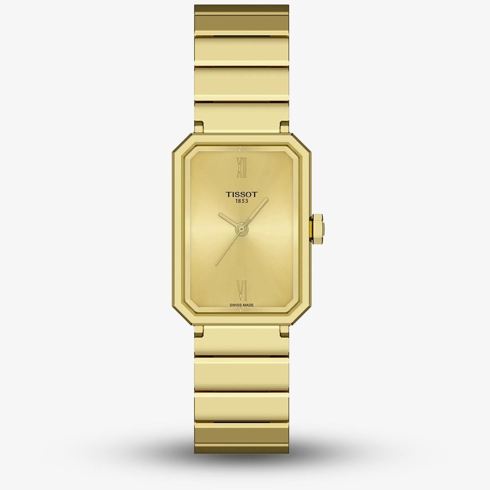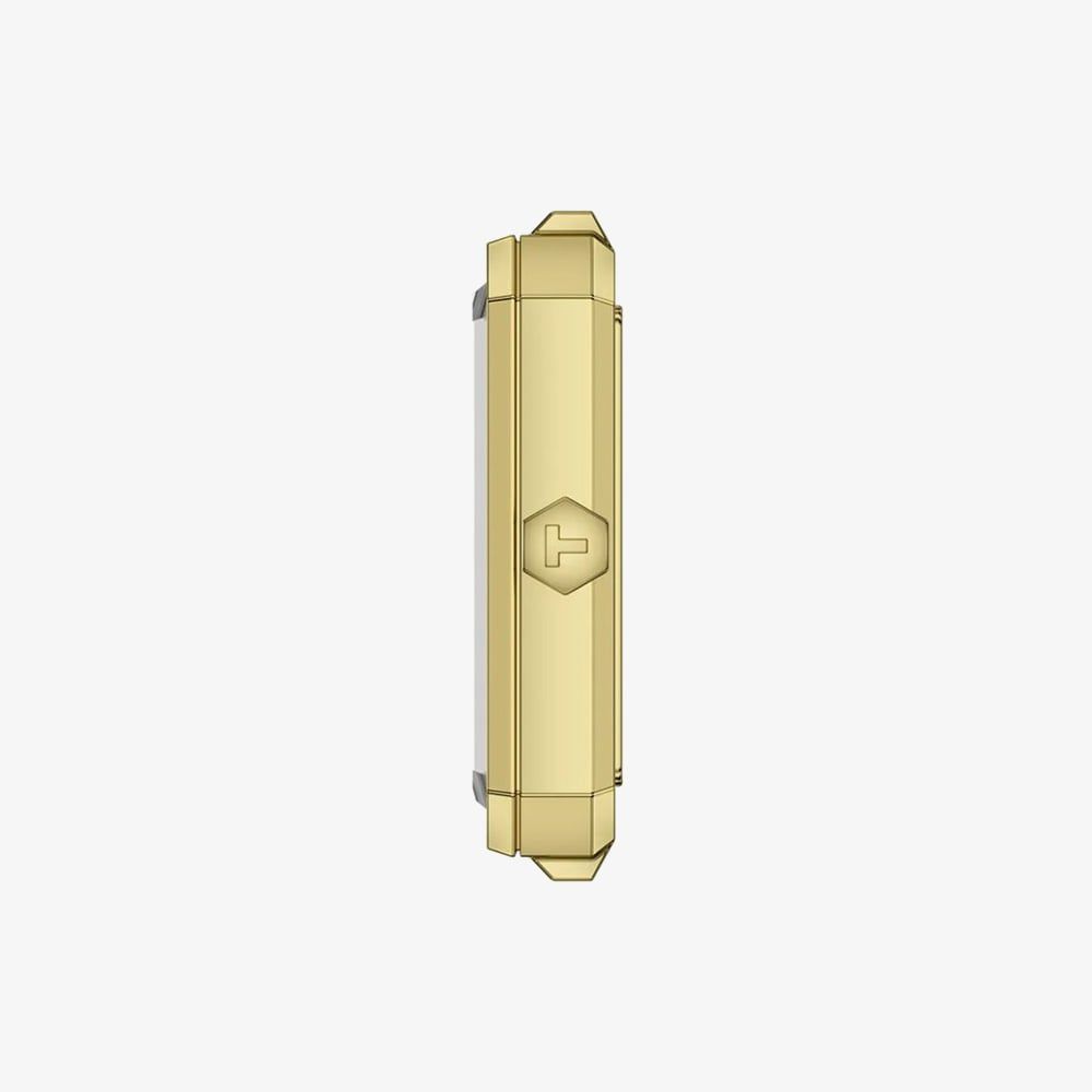 The Tissot SRV watch draws inspiration from the elegance of 1920s Art Deco, defined by its geometric lines and abstract forms. This timepiece is crafted from stainless steel with a yellow gold PVD coating, blending vintage charm with modern refinement. Its name, Sapphire Rectangle, reflects its faceted sapphire glass, rectangular silhouette, and 5-bar water resistance, symbolised by the Roman numeral V.