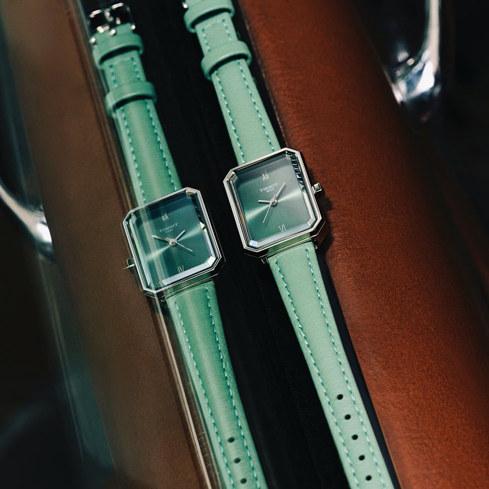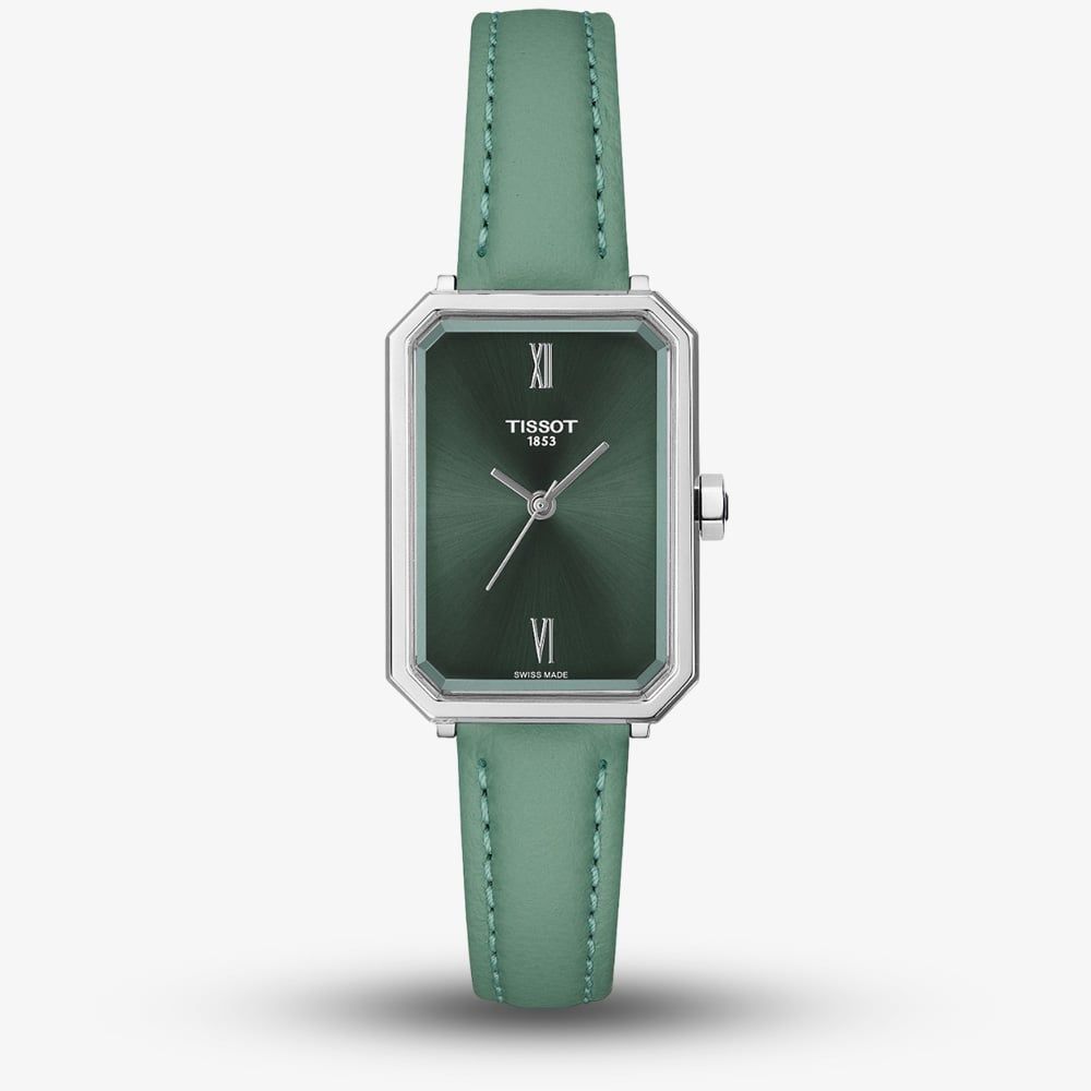Honouring 100 years of Art Deco design, the Tissot SRV Ladies Watch pairs vintage influence with contemporary refinement. Inspired by Tissot’s 1920s creations, it features a polished angular stainless steel case, a vibrant green sunray dial, and a coordinating green leather strap. The hexagonal crown adds a subtle architectural detail, while the quartz movement with end-of-life indicator offers dependable precision. Elegant and modern, it’s a stylish nod to a defining era of design.