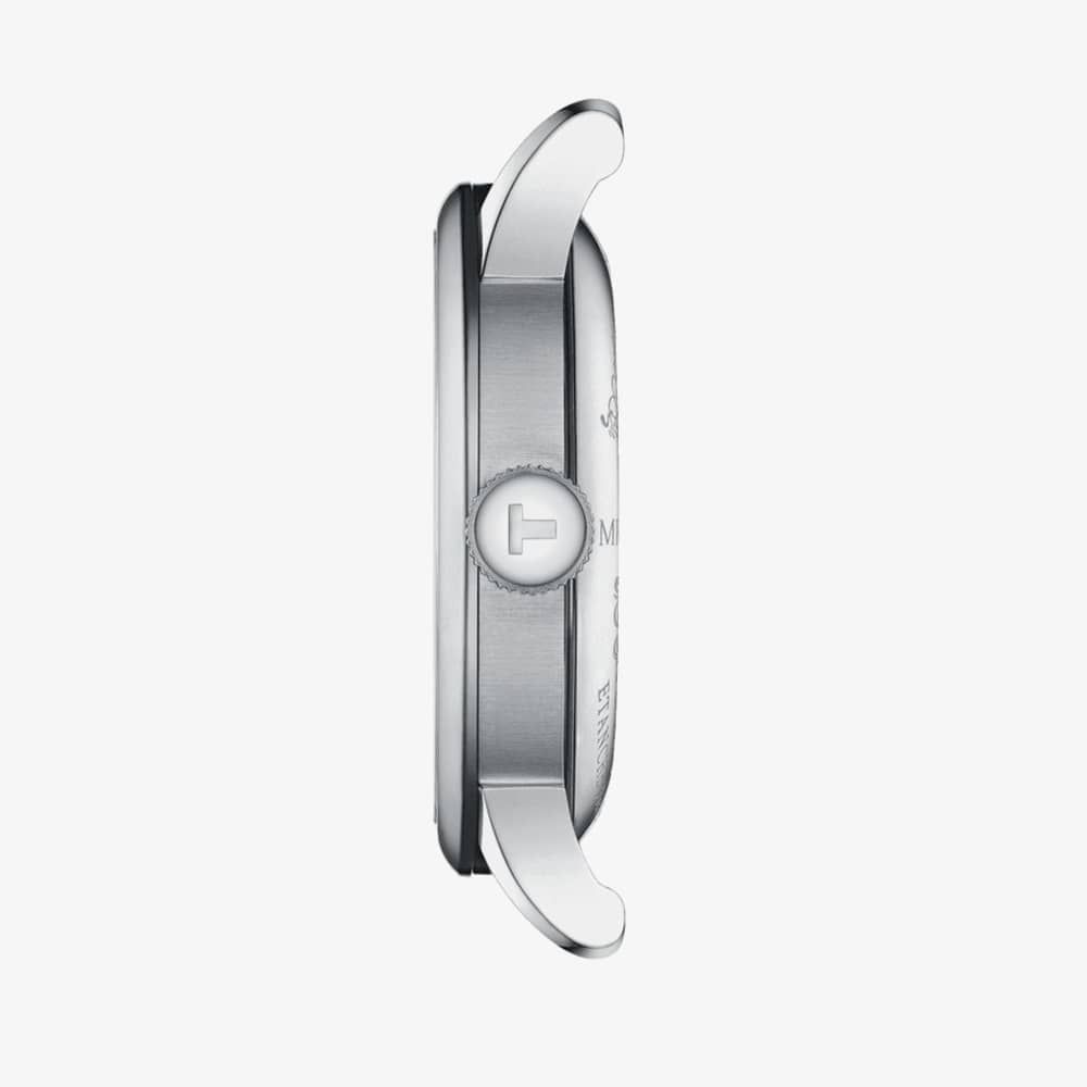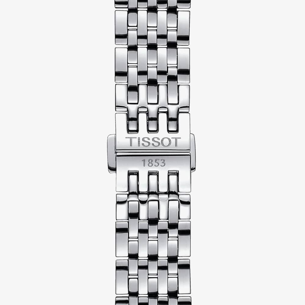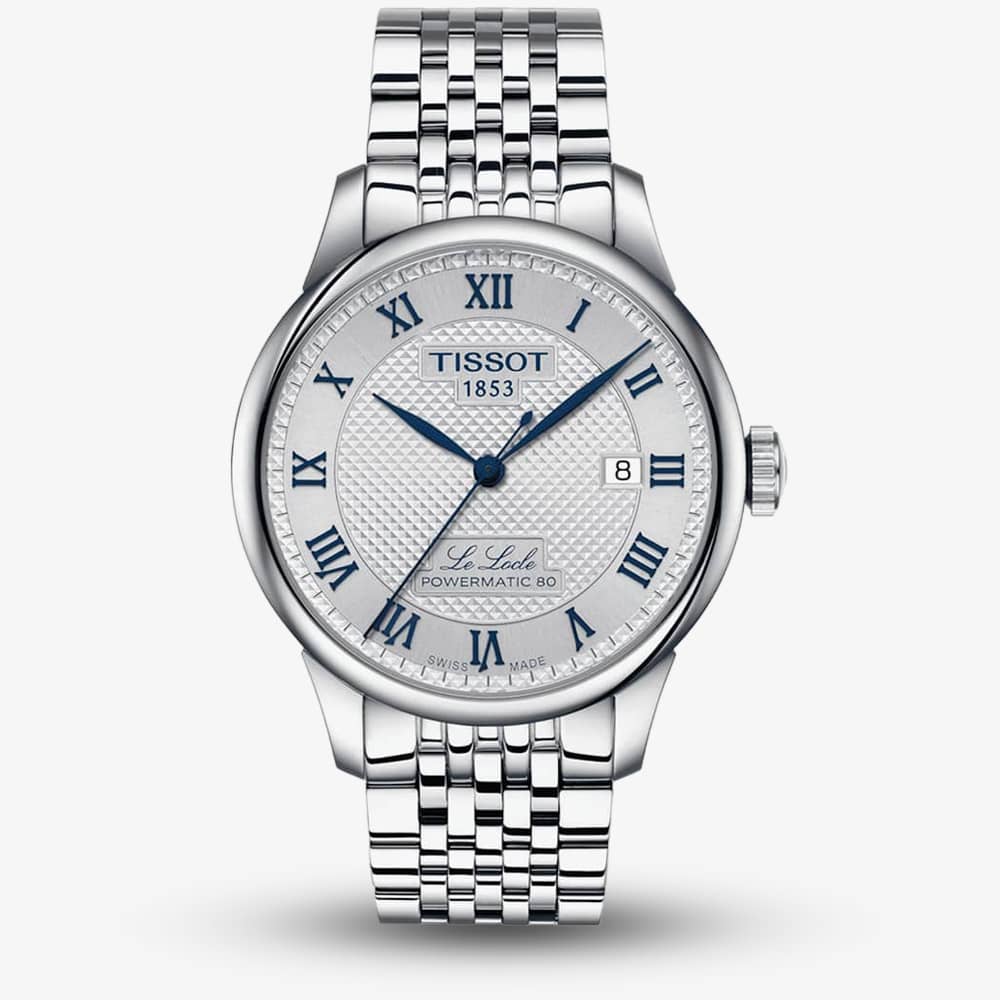 Nestled in the Swiss mountains, Le Locle has been home to Tissot since 1853. In 2003, Tissot celebrated its 150th anniversary with the "Le Locle" collection, inspired by the town's church clock tower. The Le Locle 20th Edition watch combines tradition and modernity, with a silver dial, blue Roman numerals, and leaf hands, blending classic and contemporary design. This watch includes an extra navy blue leather watch.