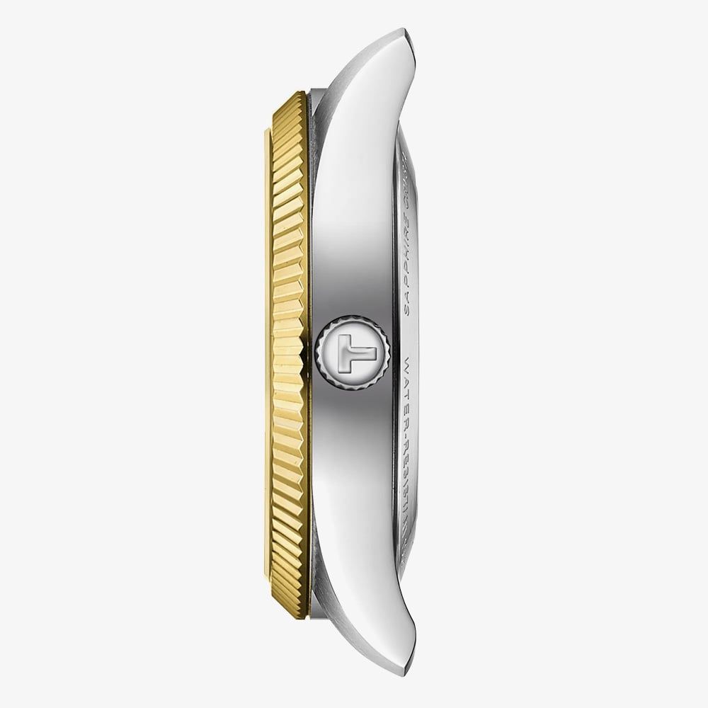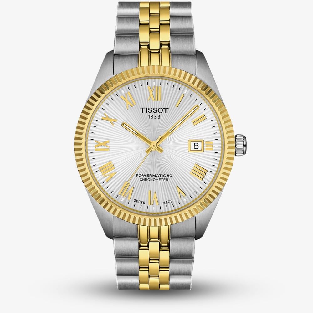 Reintroduced in 2024, the Tissot Ballade COSC merges timeless design with certified precision. Its 39mm case is crafted in a sophisticated two-tone combination of stainless steel and yellow gold PVD, paired with a matching bracelet for a refined, elegant look. The silver dial is adorned with Roman numeral hour markers, offering a clean and classic aesthetic. Powered by the COSC-certified Powermatic 80 movement, it delivers outstanding accuracy along with an impressive 80-hour power reserve. Finished with a signature fluted bezel, the Ballade COSC is a perfect balance of technical performance and enduring style.