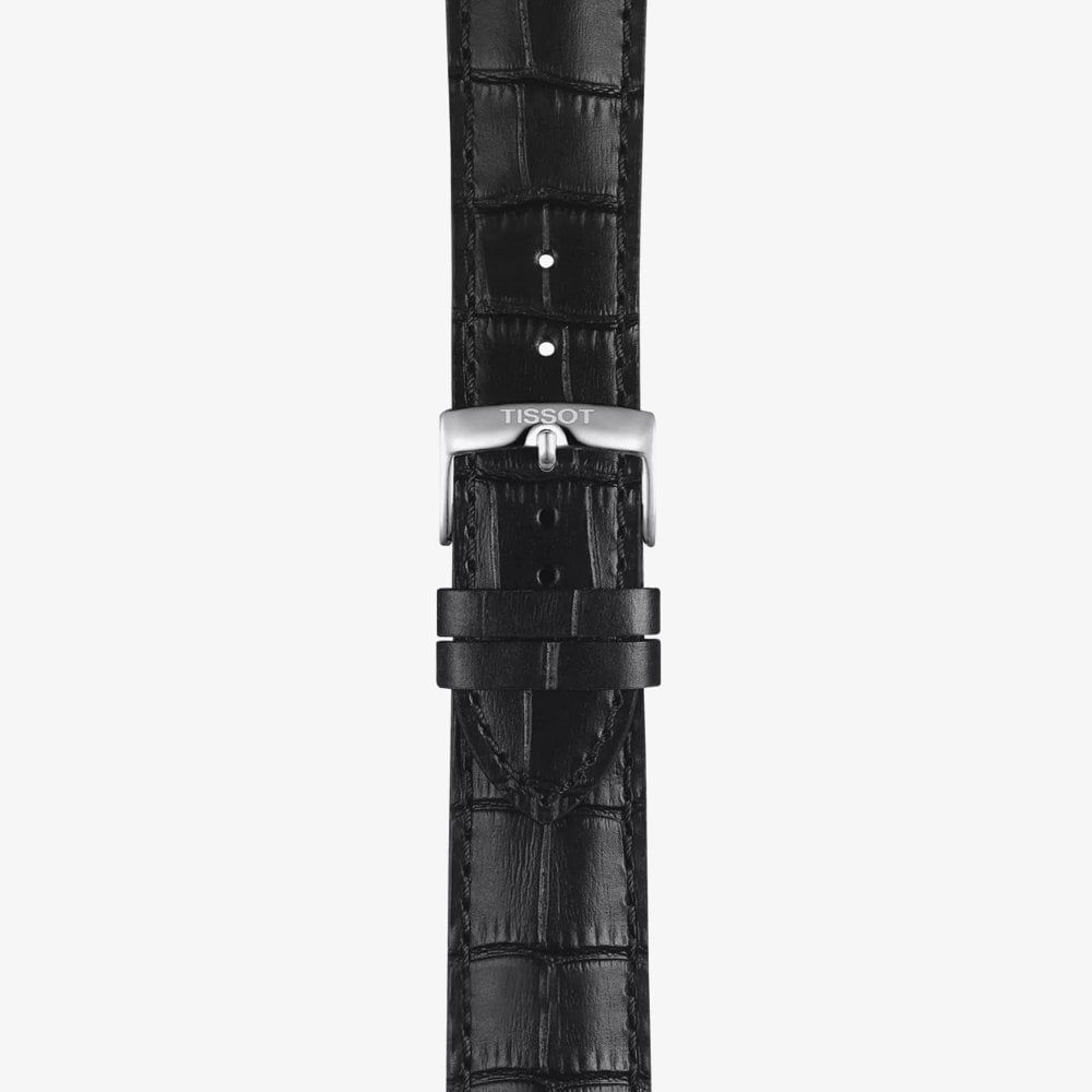 A black alligator-style grained cowhide leather strap with traditional buckle clasp ensures a secure and comfortable fit to the wrist. Practical features such as the EOL battery indicator and the quick-release strap system allow for effortless maintenance and personalisation. Designed for versatility, it is water resistant to 100 metres, making it suitable for both professional settings and weekend adventures. This model is ideal for those who appreciate a watch that transitions seamlessly from the office to the outdoors while maintaining an air of traditional craftsmanship.