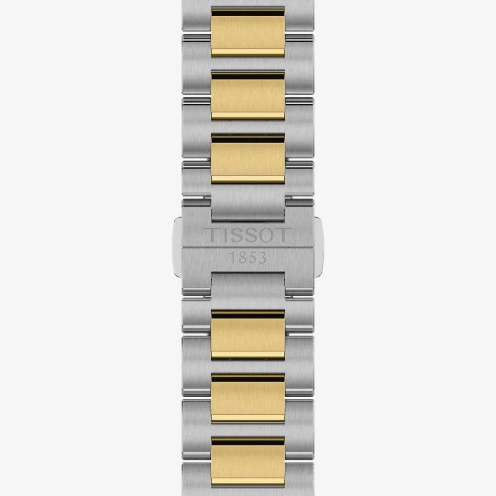 The Tissot PRC 100 Solar Silver Dial Two-Tone Bracelet Watch combines classic style with modern innovation. Its silver dial is framed by a striking gold dodecagon-shaped bezel, complemented by a two-tone stainless steel bracelet with yellow gold PVD accents for a sophisticated finish. Powered by Lightmaster Solar Quartz movement, this watch harnesses photovoltaic energy from both natural and artificial light, delivering precise, reliable timekeeping without the need for frequent battery changes. A sleek, eco-conscious timepiece designed for everyday elegance.