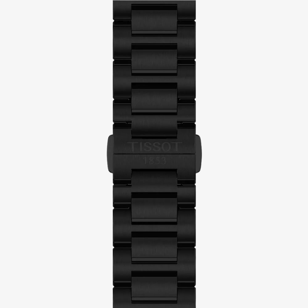 A sleek and sophisticated timepiece that seamlessly combines sporty design with cutting-edge technology. The deep black dial exudes a sense of modern sophistication and sporty appeal. The white hands and indices provide excellent contrast and readability, ensuring optimal timekeeping. The date display at the 3 o'clock position adds practical functionality. This watch is powered by Tissot's innovative solar quartz movement, harnessing the power of light to provide accurate and reliable timekeeping. This eco-friendly technology eliminates the need for frequent battery changes.