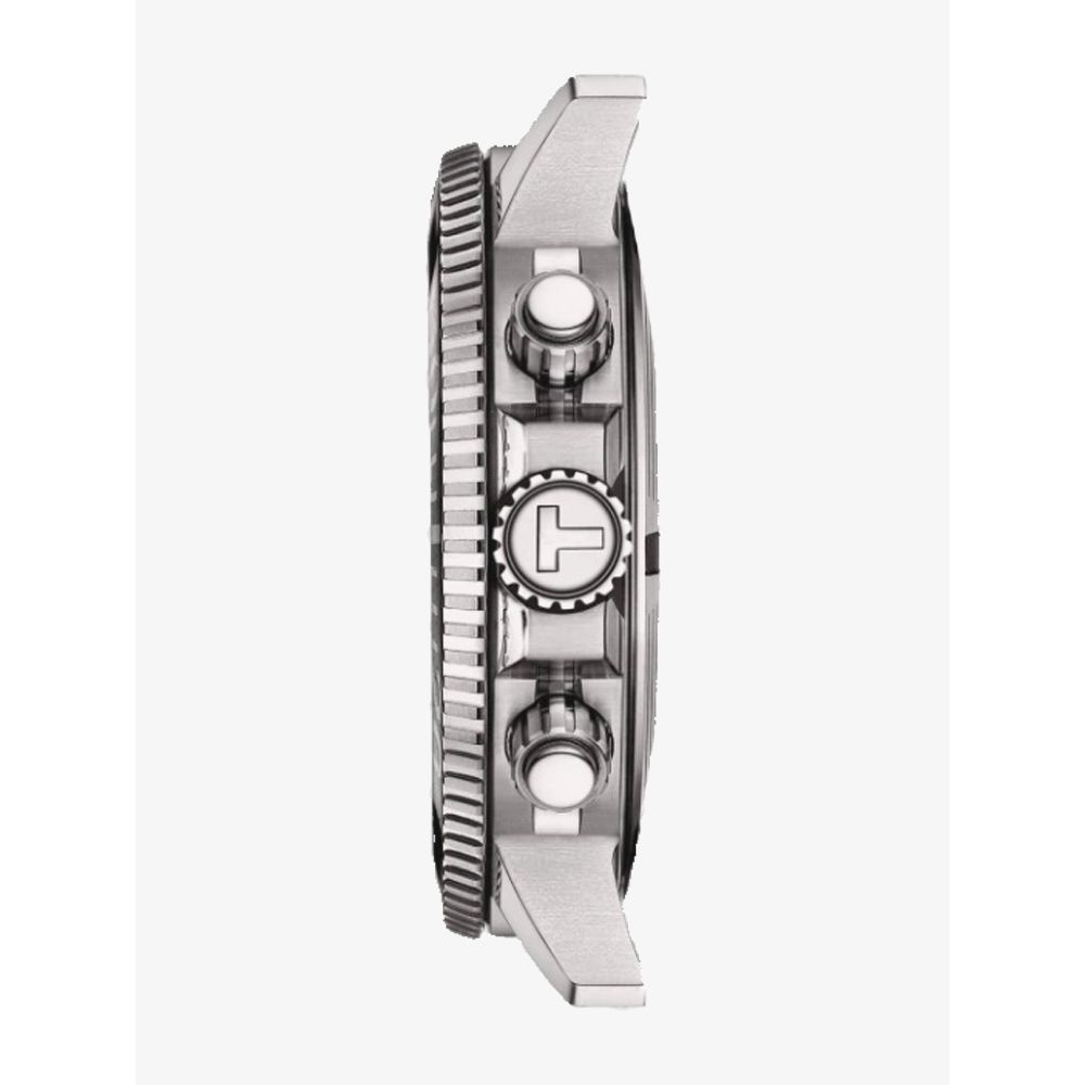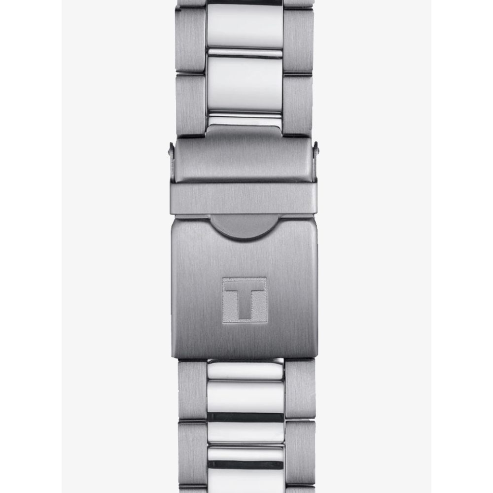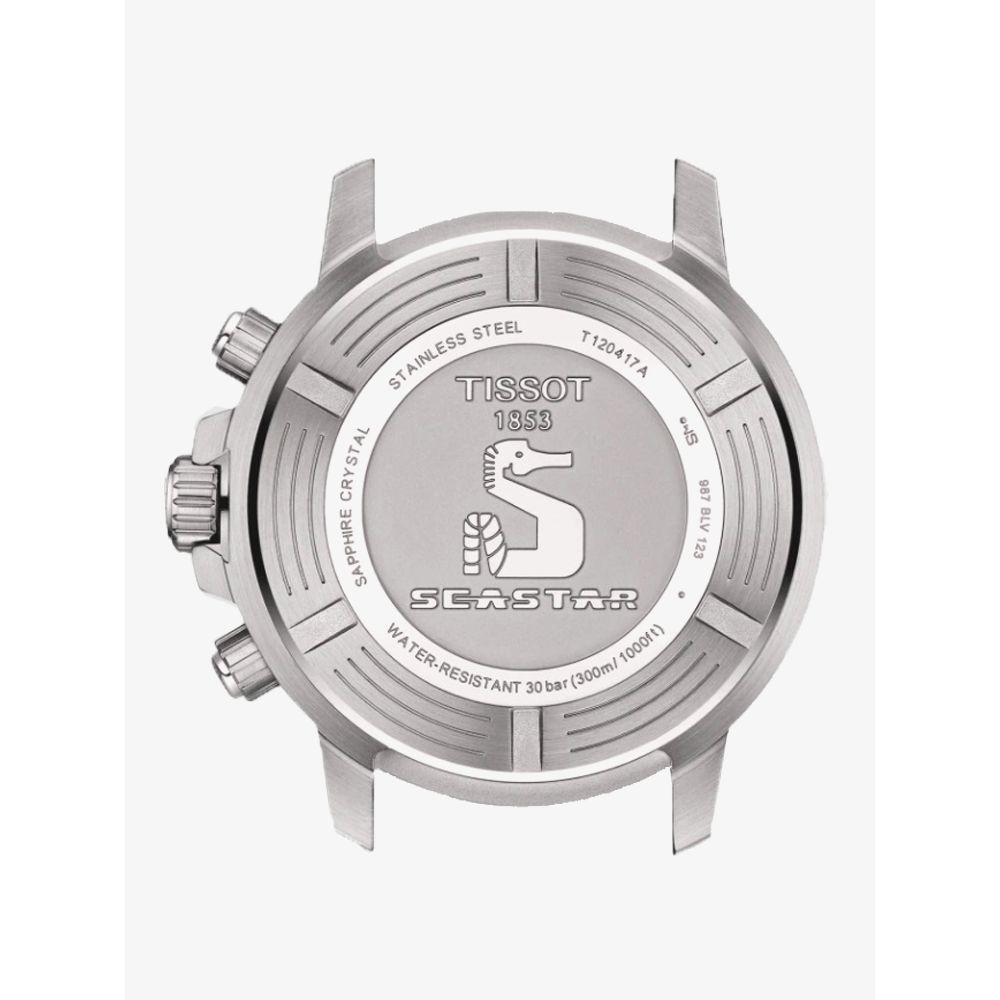 The Tissot T120.417.11.091.01 Seastar watch from the T-Sport collection combines a 45.5mm round shaped stainless steel case and silver stainless steel bracelet with a fold over clasp fitted with safety and a diver extension. It has a green gradient analogue dial which is protected beneath sapphire crystal glass with an anti-reflective coating. Power is generated by a 13 1/4" Swiss quartz EOL movement with a Renata 394 battery. This model also has a water resistance of up to 300 metres.