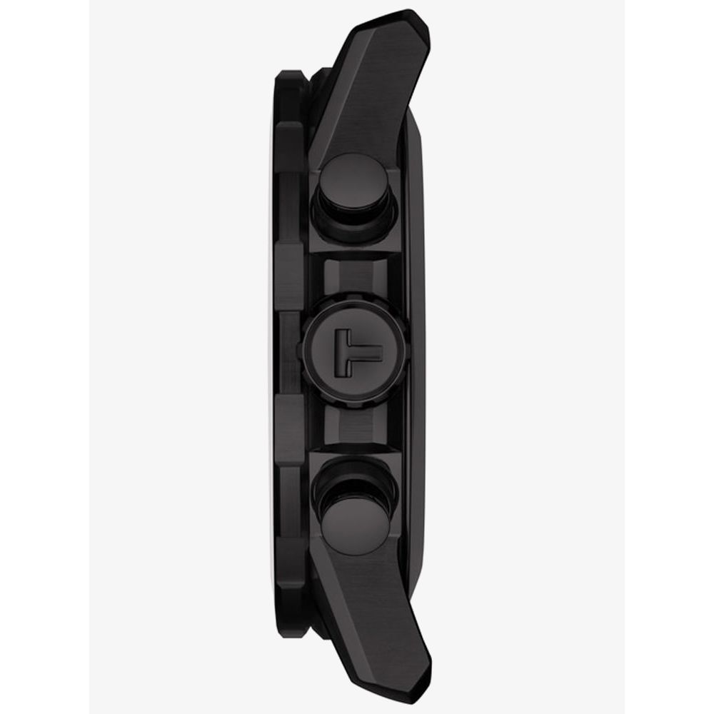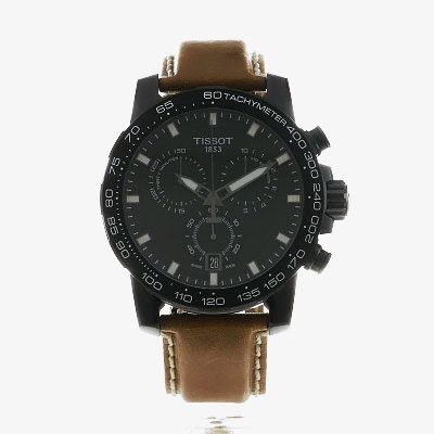 From Tissot's T-Sport collection, a dynamic design crafted with a hard wearing stainless steel and black PVD case featuring an aluminum bezel, black coloured chronograph dial with Superluminova hands and indexes which are protected by a scratch resistant Sapphire Crystal glass. Additionally this model is powered by a Swiss quartz movement, features date display, stopwatch functionality and finished with a brown leather strap which complements it perfectly.