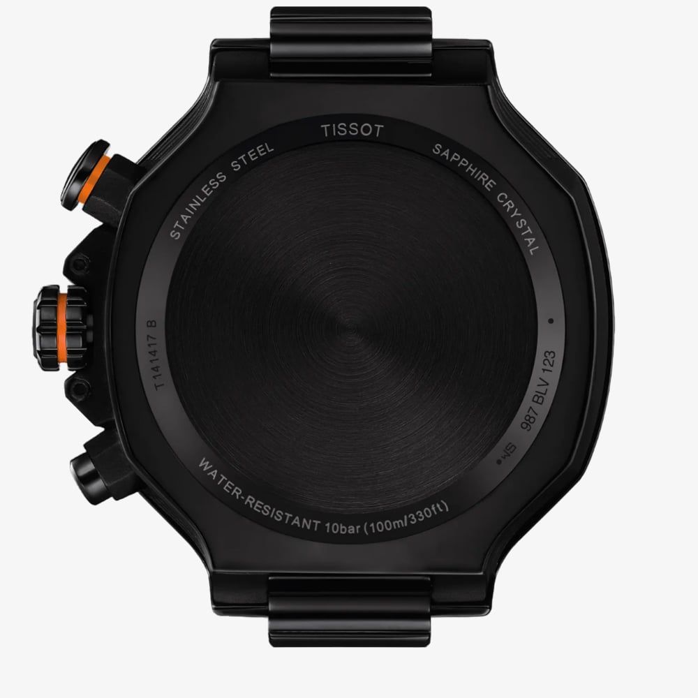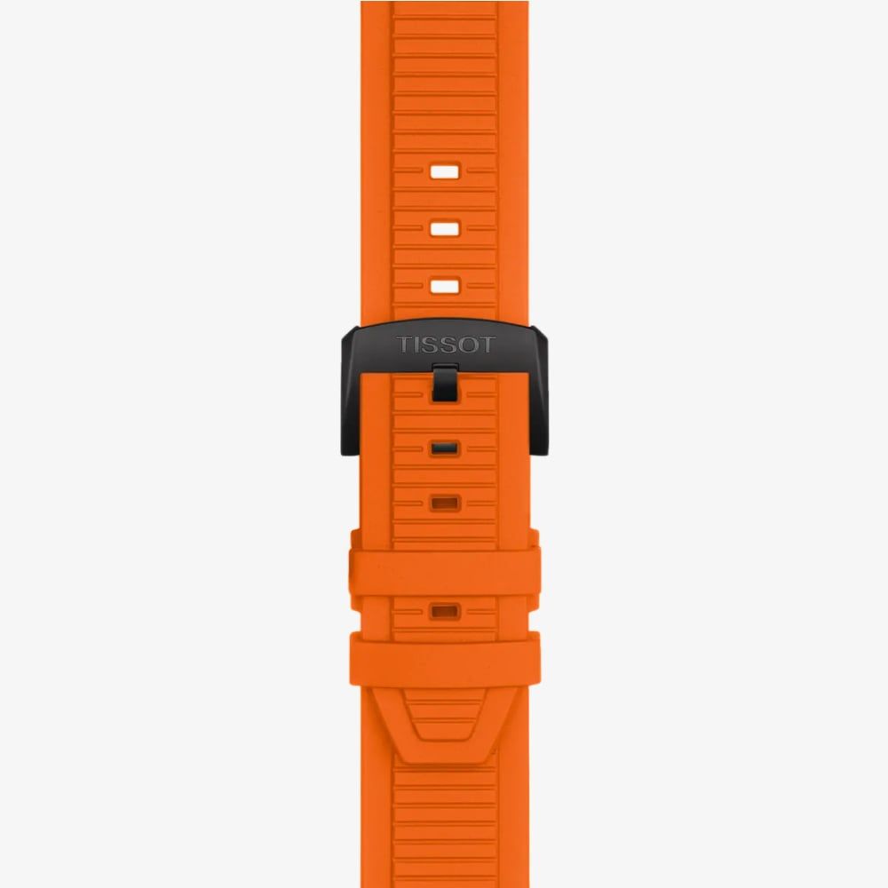 A bold and dynamic timepiece, its striking black stainless steel case is complemented by an eye-catching orange rubber strap, offering both durability and comfort. The black dial features chronograph functionality, luminous hands, and indices for enhanced readability, along with a date display for added convenience. Designed for precision and performance, this watch is powered by a reliable Swiss quartz movement and is water-resistant up to 100 meters, making it perfect for active lifestyles.