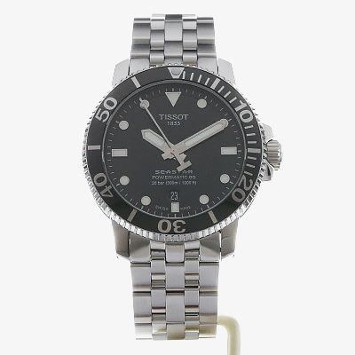 Using powermatic technology to control the bold luminescent hands and matching hour markers as well as the functioning date window which comes displayed on a black dial. Fastens securely using a stainless steel bracelet.