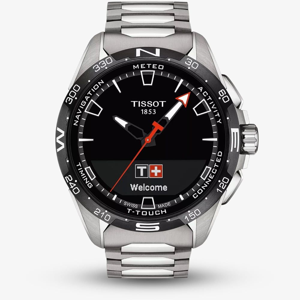 https://www.thbaker.co.uk/tissot-mens-t-touch-connect-solar-black-bracelet-smart-watch-t121-420-44-051-00179159Tissot Mens T-Touch Connect Solar Black Bracelet Smart Watch T121.420.44.051.00https://www.thbaker.co.uk/media/catalog/product/2/3/23-99-t121.420.44.051.00_tissot_01.jpg11101110GBPInStock/Brands A-Z/Tissot Watches/Brands A-Z/Tissot Watches/Tissot Gents/Brands A-Z/Tissot Watches/Tissot Latest Arrivals/Watches/Watches/Mens Watches/Watches/Luxury Watches/Watches/Luxury Watches/Mens Luxury Watches/Free Gift Card - When you spend £500+/£100 Gold Gift Card (£1000 - £2000)/Admin/Free Gift With Purchase Products/Watches/Swiss Watches/Brands A-Z/Tissot Watches/Tissot Solar/Watches/Titanium Watches/Watches/Solar Powered Watches/Watches/Waterproof Watches/Watches/Chronograph Watches/Brands A-Z/Tissot Watches/Tissot Chronograph/Brands A-Z/Tissot Watches/Tissot T-Touch/Watches/Smart Watches/Watches/Digital Watches/Watches/Smart Watches/App, Call, Email & Text Alert/Watches/Smart Watches/GPS Tracking/Watches/Smart Watches/Hybrid Smart Watches/Watches/Smart Watches/Solar Powered Smart Watches/Watches/Smart Watches/Step Tracking/Watches/Smart Watches/Waterproof Smart Watches/Flash Sale42966588780036263627644373587234739576334692659471297130783942776595595152514285666166656667666966706671804212479242963626644364135251The Tissot T-Touch Connect Solar T121.420.44.051.00 is a sophisticated fusion of sustainable technology and high-grade materials. Constructed from satin finished titanium, this model offers a substantial presence on the wrist while remaining remarkably light and comfortable to wear. The integrated titanium bracelet enhances the sleek, architectural lines of the 47mm case, providing a cohesive look that transitions easily from outdoor exploration to urban environments. Its ceramic bezel adds a layer of scratch resistance and a polished touch to the sporty design.