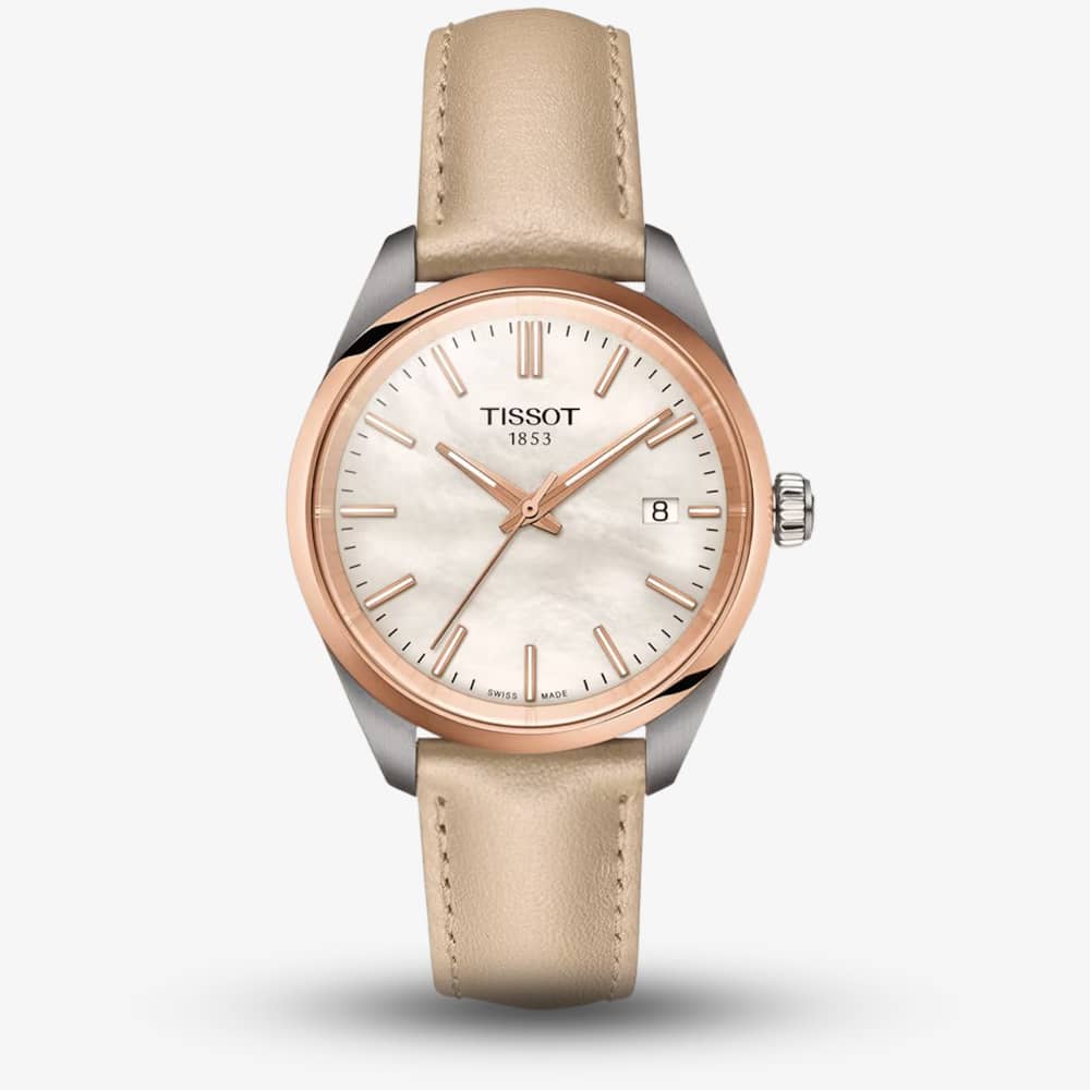 Explore the elegance of a women's Tissot watch, featuring a cream embossed cow leather strap that adds a touch of sophistication. This timepiece is further enhanced by a rose gold-plated bezel and a mesmerising mother of pearl dial, creating a blend of style and grace that's perfect for any occasion.