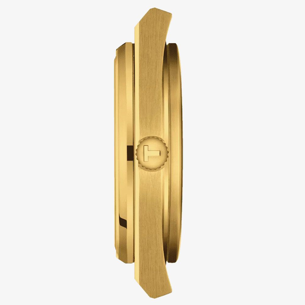 This Tissot watch is crafted in stainless steel with a yellow gold PVD coating and a gold dial to give an overall full gold look. With a Caliber 11 1/2" automatic movement, it embodies flawless functionality. And, with its scratch-resistant sapphire crystal, this watch is designed to accompany you on your adventures, looking stunning every step of the way.