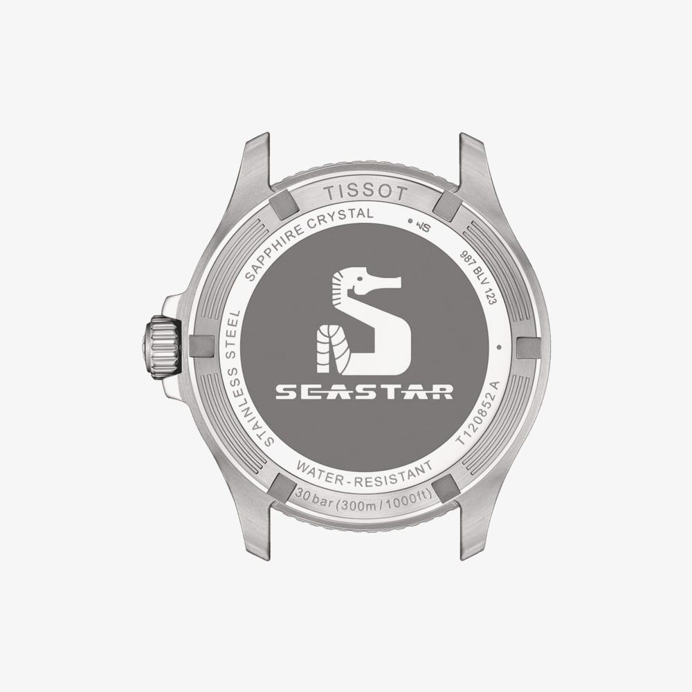 Combining all the essential features of a sports watch, this model is a timepiece you can trust—whether you're on land, in the water, or diving deep below the surface. The Seastar 1000 Quartz GMT is the ultimate aquatic companion. Its screw-down crown adds extra defence against impacts. Explore this new all-black diver’s watch, equipped with a black textured rubber strap and bold contrasting white hands and indexes.