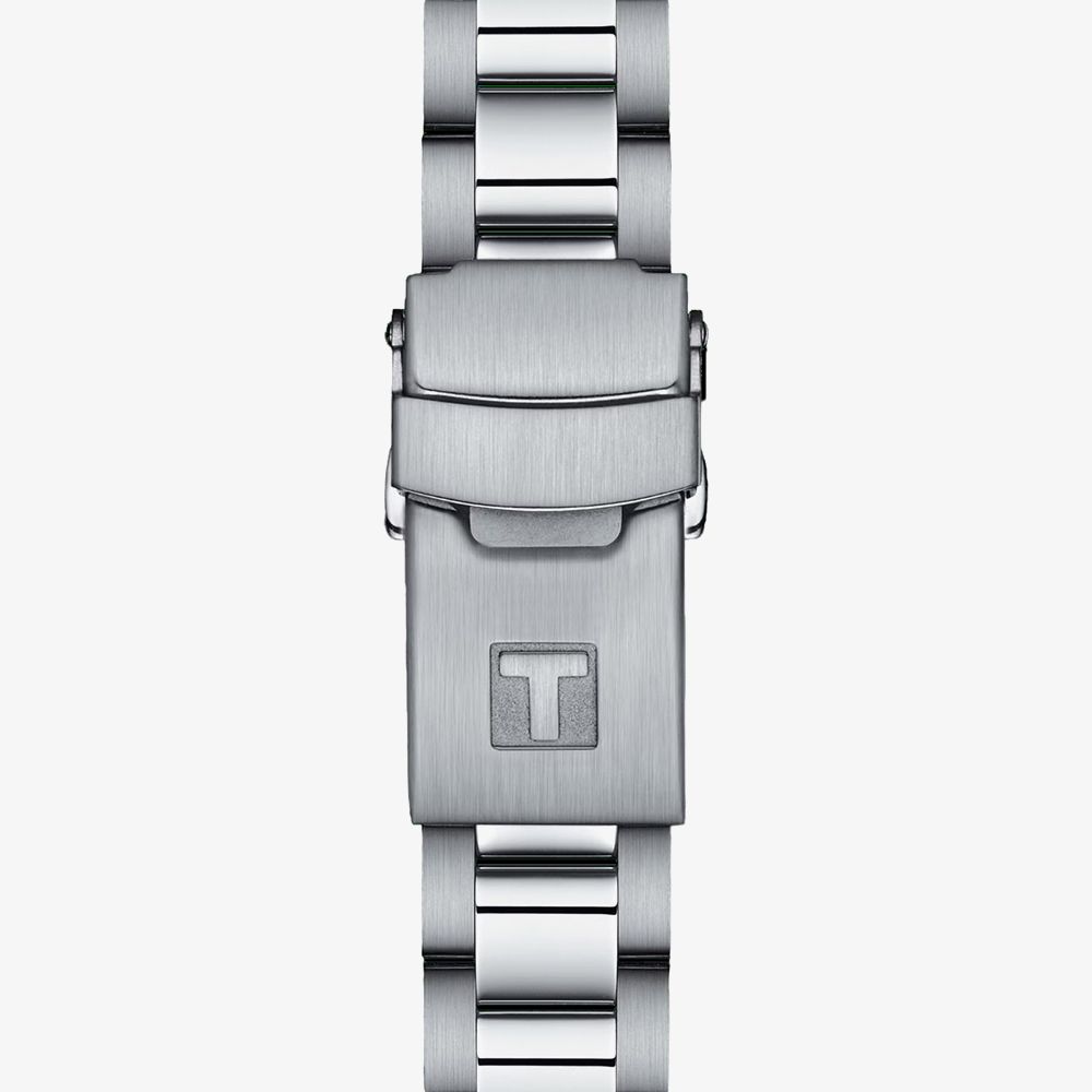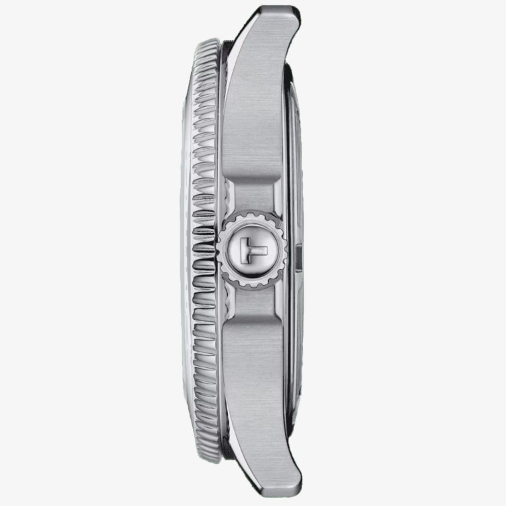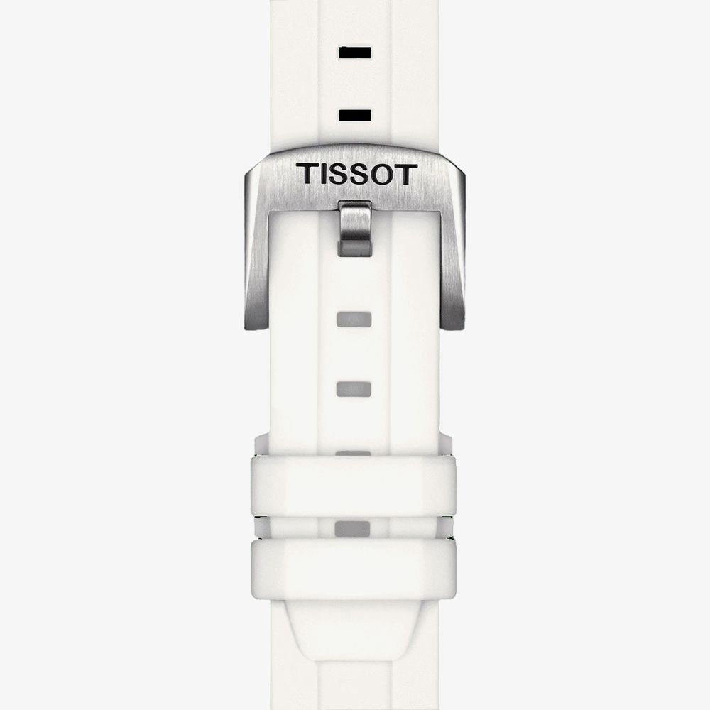 The Tissot Unisex Seastar 36mm White Dial T120.210.11.011.00 watch combines a 36mm round shaped stainless-steel case and silver stainless steel bracelet with a fold over clasp. It has a white analogue dial that features super luminova luminescent hands and markers and is protected beneath anti reflective sapphire crystal glass. Power is generated by the swiss quartz movement. This model also has a water resistance of up to 300 metres. Watch also comes with a second white rubber strap, which is easily interchangeable due to the quick release bracelet