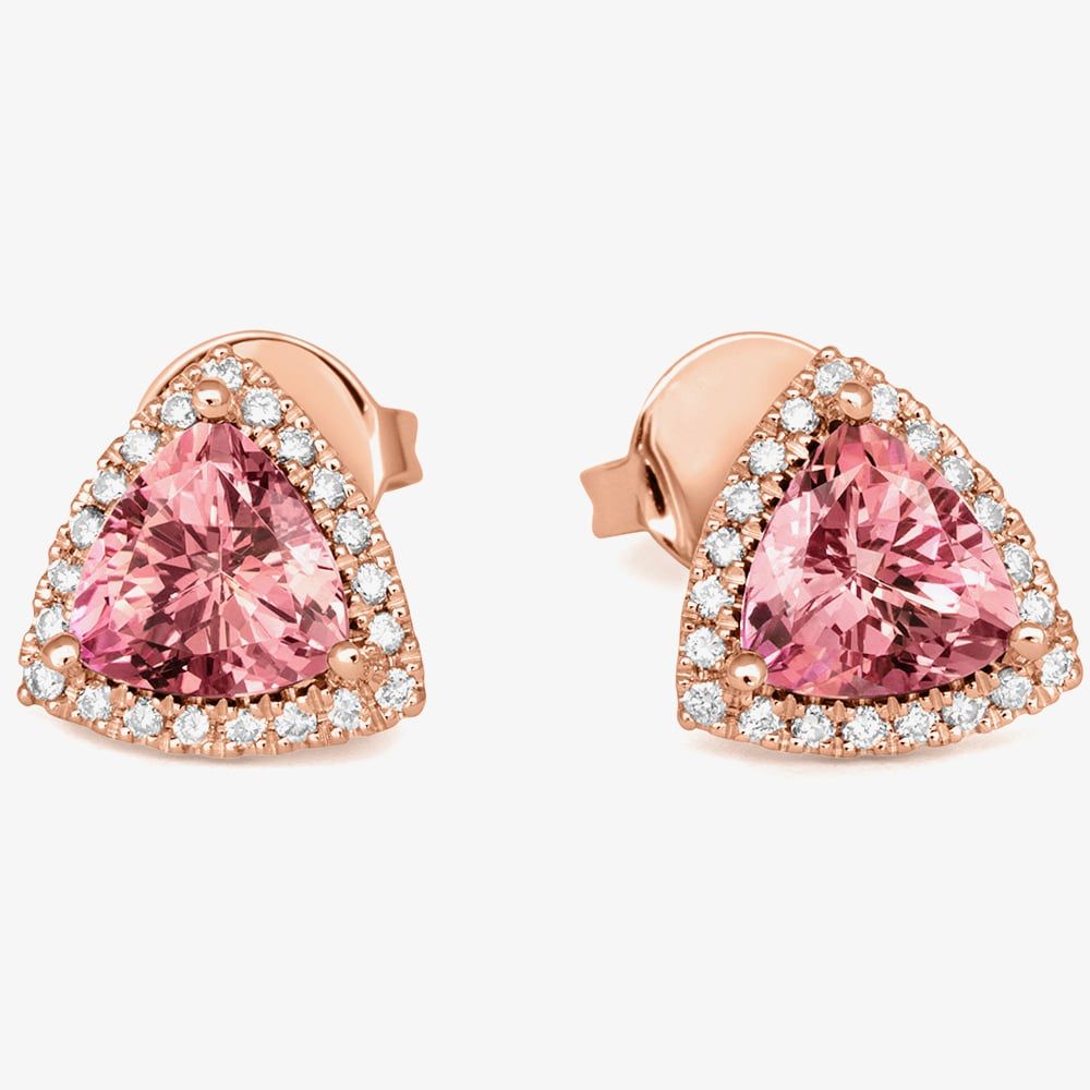 These elegant stud earrings have been crafted in 18ct rose gold & feature a striking trillion-cut Morganite centre stone with a sparkling brilliant-cut diamond halo surround. The perfect statement piece or ideal for layering & combining with other earrings to create your own unique look. Gemstone & Diamond Weights are Total Morganite Total 1.13ct Diamonds Total 0.17ct.