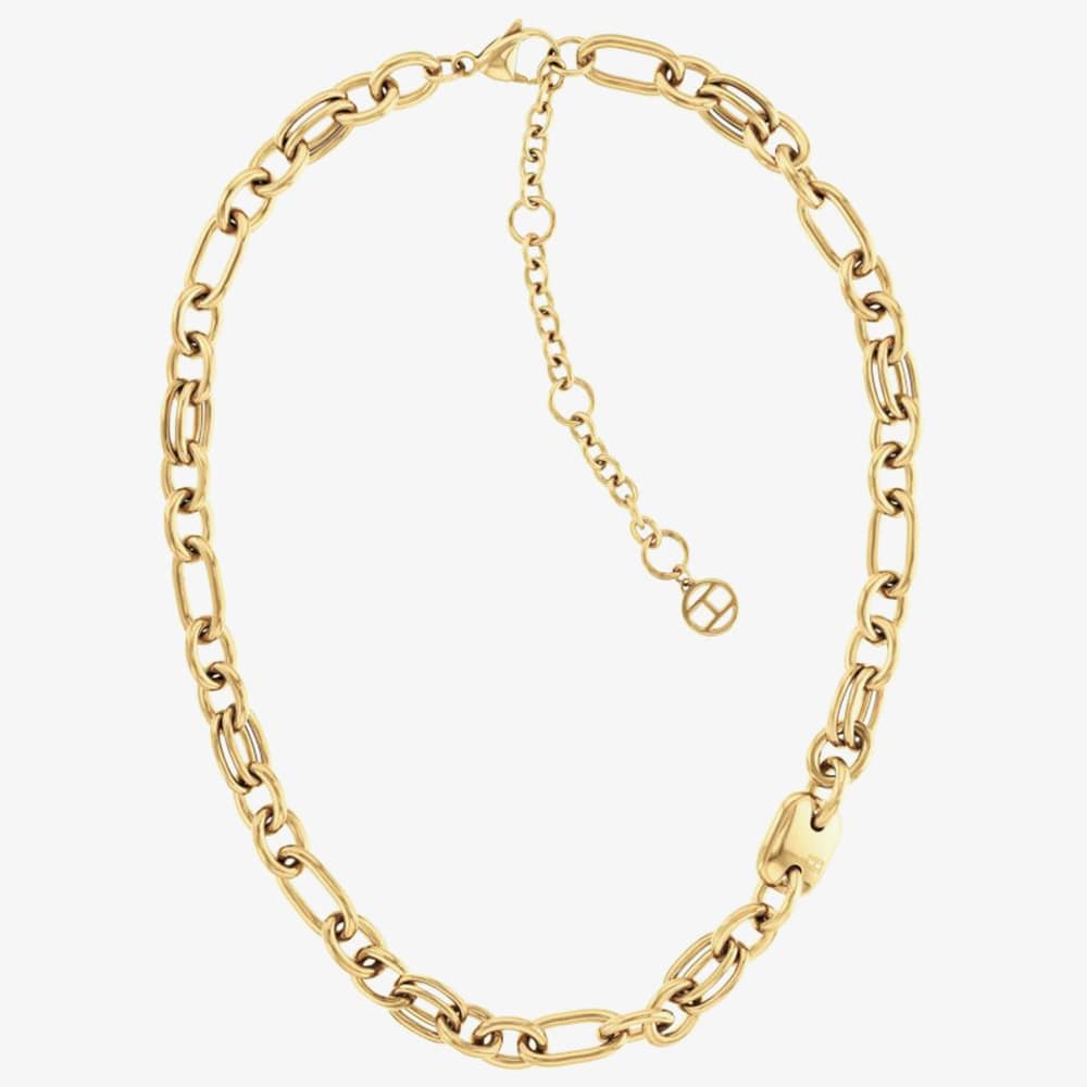 Crafted to perfection, it boasts a sleek and timeless design with the iconic Tommy Hilfiger logo elegantly engraved on one of the links, adding a touch of brand recognition to this classic piece. A symbol of style and sophistication, this chain is the perfect accessory to enhance any outfit.