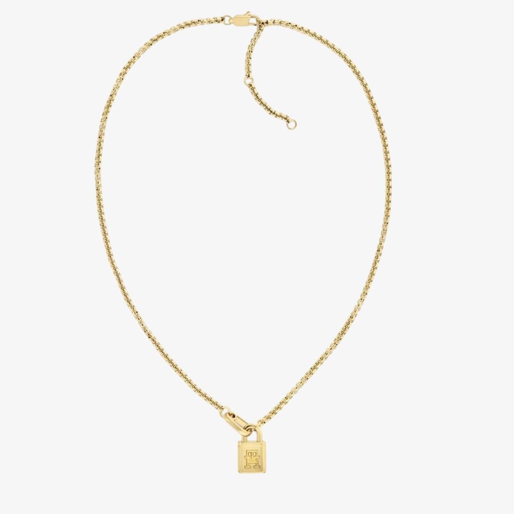 A chic and timeless piece that adds a touch of classic elegance to any outfit. Crafted from polished gold-tone metal, this necklace features a delicate chain that gracefully drapes around the neckline. The centrepiece of the necklace is a subtle yet stylish pendant incorporating the iconic Tommy Hilfiger logo. This design makes it a versatile piece that can be worn every day for a touch of understated glamour or saved for special occasions to elevate your look. It can be worn solo for a minimalist statement or layered with other necklaces for a more personalised style.