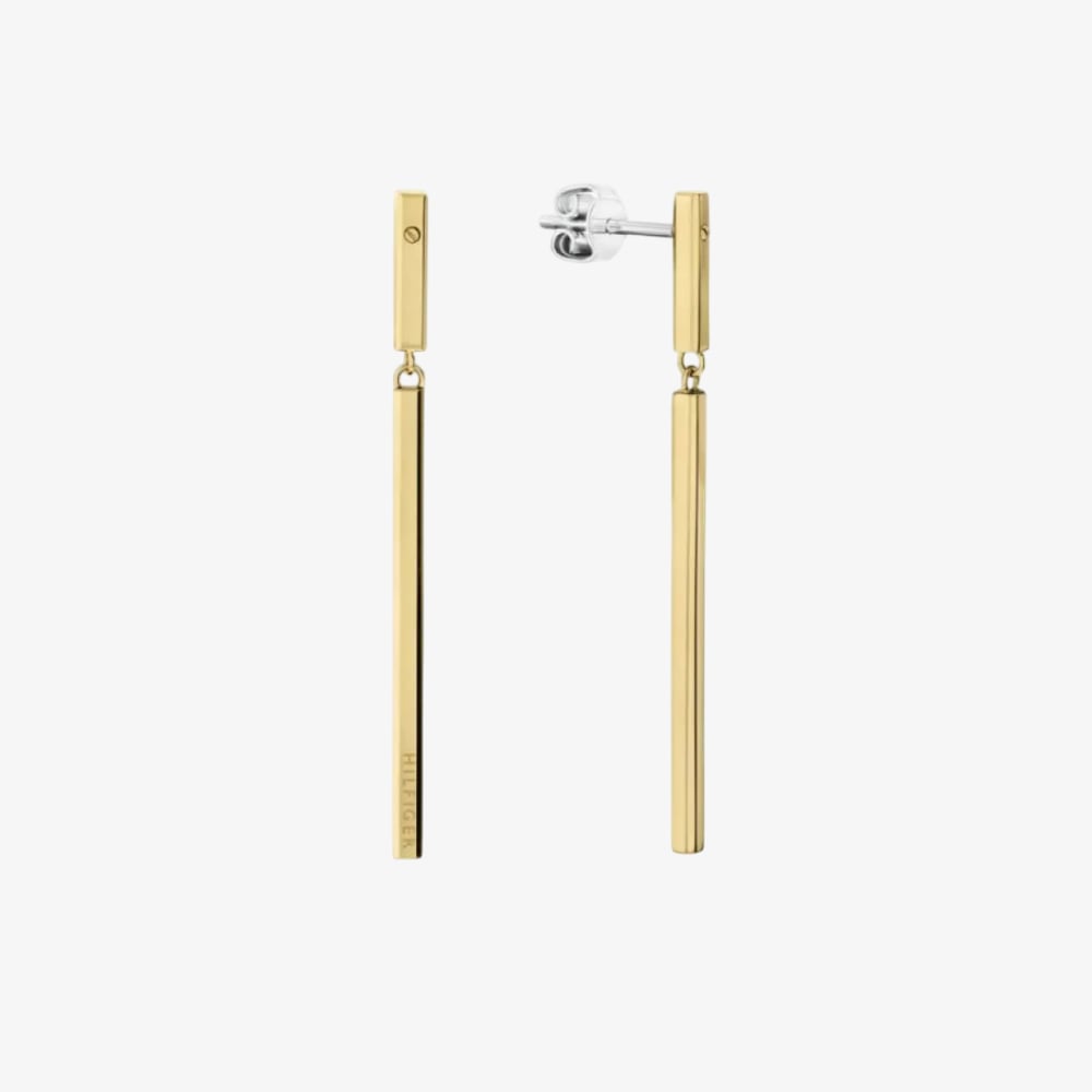 Crafted from polished gold-tone metal, these earrings feature a sleek, horizontal bar design. The clean lines and understated elegance make them a versatile piece suitable for both everyday wear and special occasions. The iconic Tommy Hilfiger branding is subtly incorporated, adding a touch of recognition. These earrings are lightweight and comfortable, making them perfect for adding a touch of sophisticated simplicity to your look.
