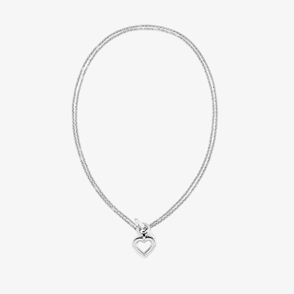Crafted from polished silver-tone metal, this necklace features a delicate chain that gracefully accentuates the neckline. The centerpiece is a delightful heart pendant, embodying a classic symbol of love and affection. The iconic Tommy Hilfiger branding is subtly incorporated into the heart's design, offering a discreet yet recognizable brand accent. This necklace is perfect for adding a touch of playful sophistication to everyday wear or complementing a more dressed-up occasion.