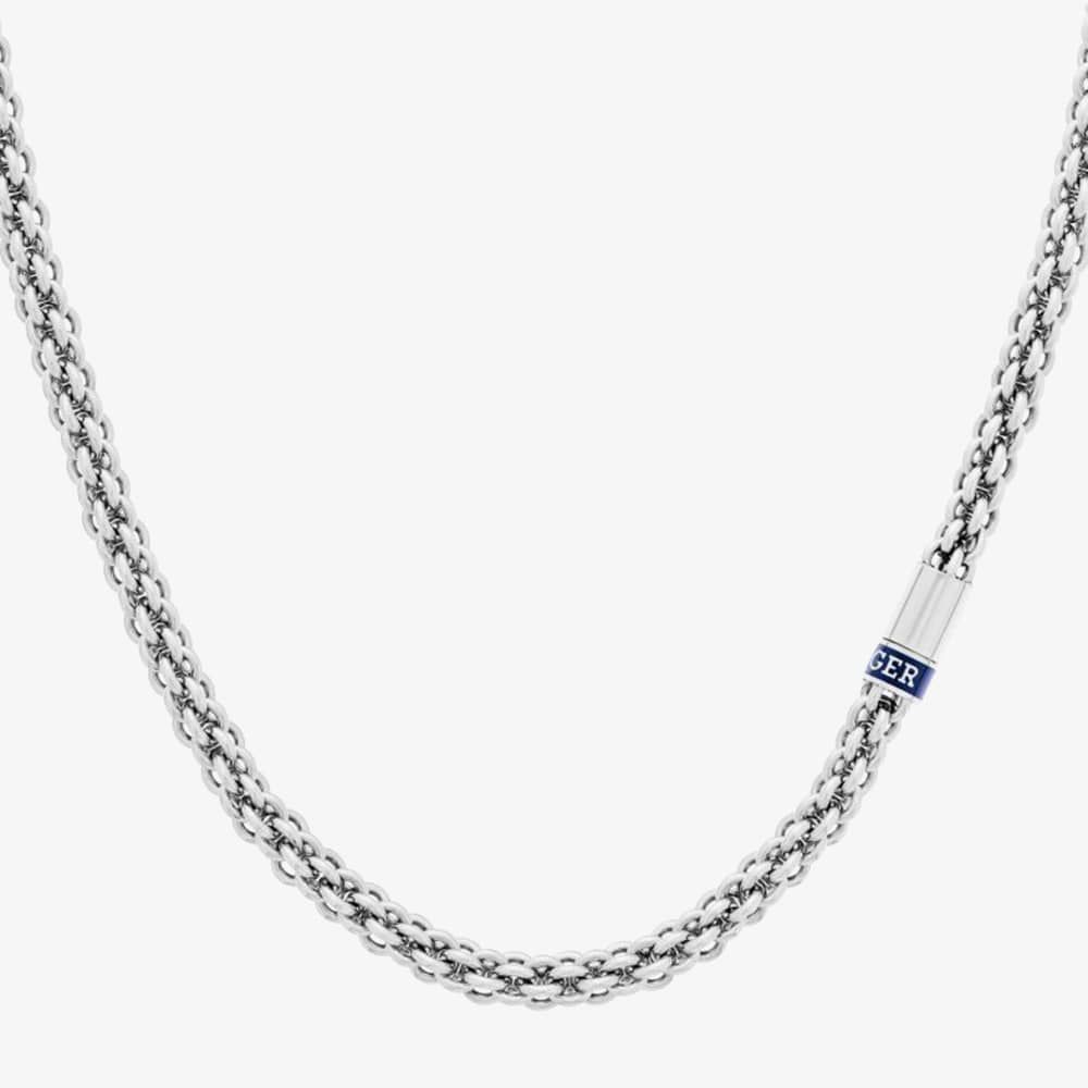 Crafted from durable stainless-steel double-link belcher chain with intertwining links, this chain showcases a perfect fusion of style and sophistication. The clasp features the brand name, adding a touch of iconic charm to your look.