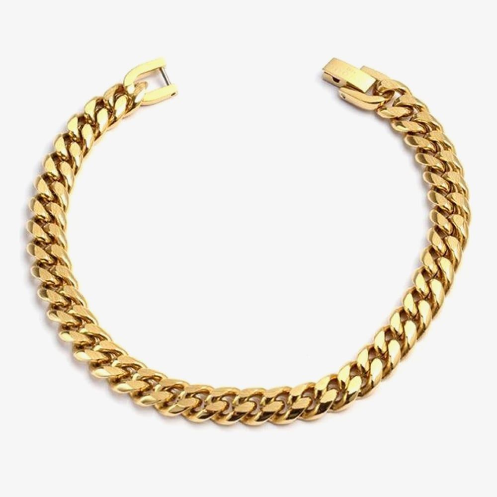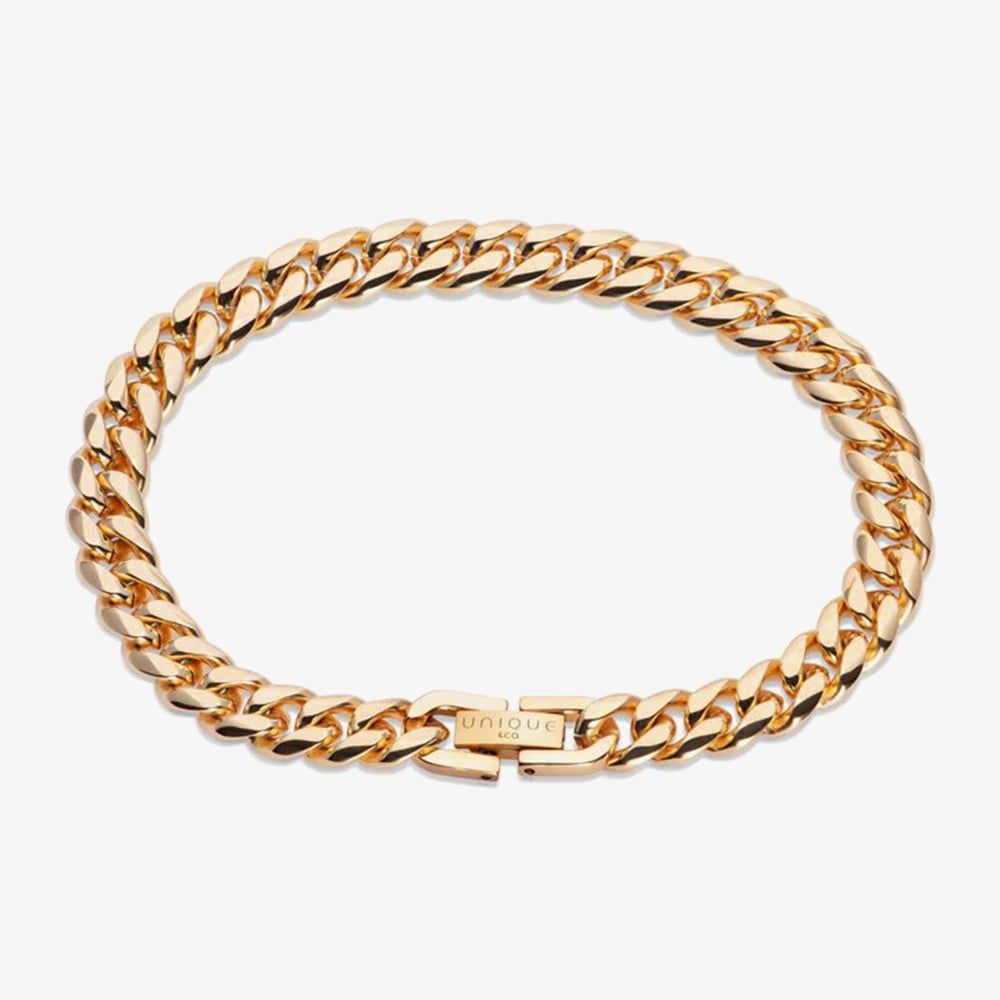 Men's distinctive curb chain bracelet crafted from durable, gold-tone stainless steel, offering a sleek, polished finish and a modern, stylish look. Perfect for everyday wear or special occasions, this bracelet combines rugged appeal with a touch of elegance.