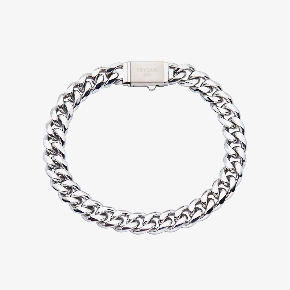 This 8mm curb chain bracelet is crafted from polished stainless steel, offering a bold and timeless look. Its smooth, reflective finish adds a touch of sophistication, making it a standout piece for both casual and formal wear.