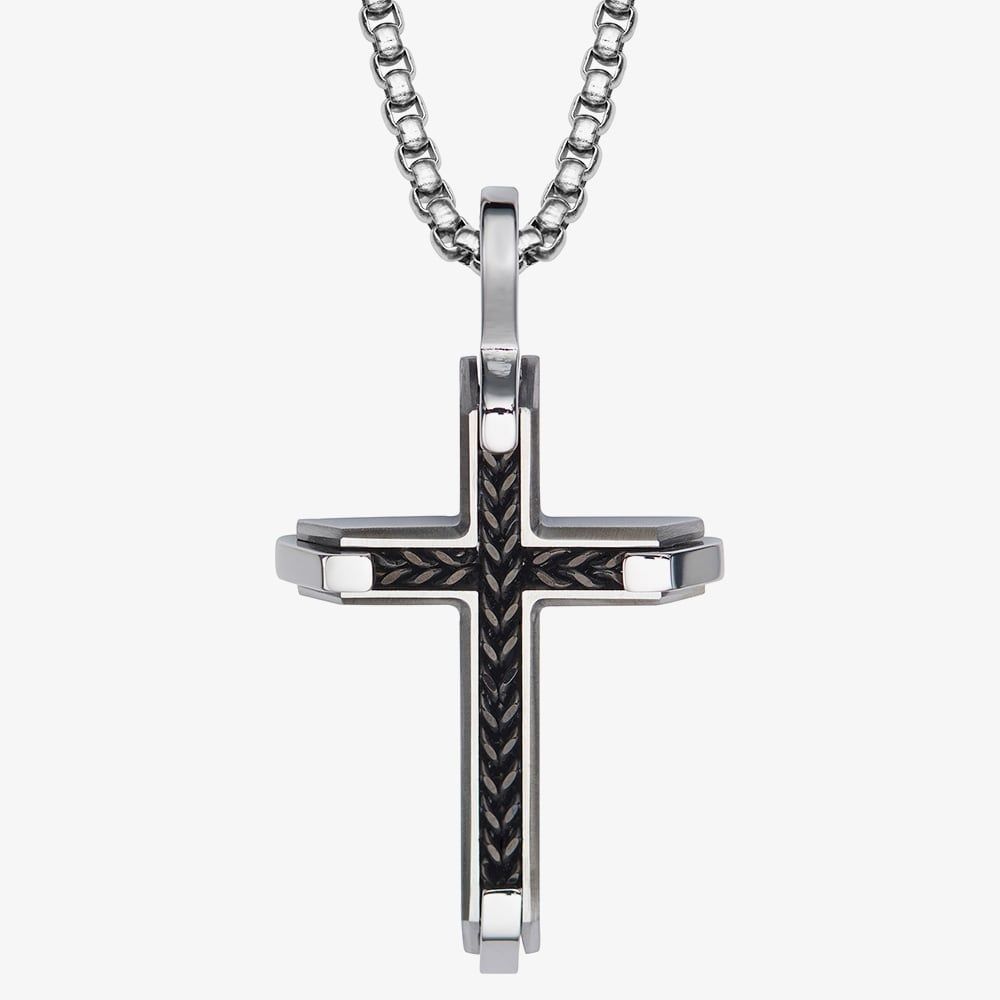 Elevate your look with this Unique Stainless Steel Black IP Inlay Cross Pendant Necklace.. Crafted from durable stainless steel, the pendant features a striking black IP inlay design that combines modern style with timeless symbolism. Suspended on a stylish belcher chain, this men’s cross necklace offers a bold, contemporary statement while remaining versatile enough for everyday wear.