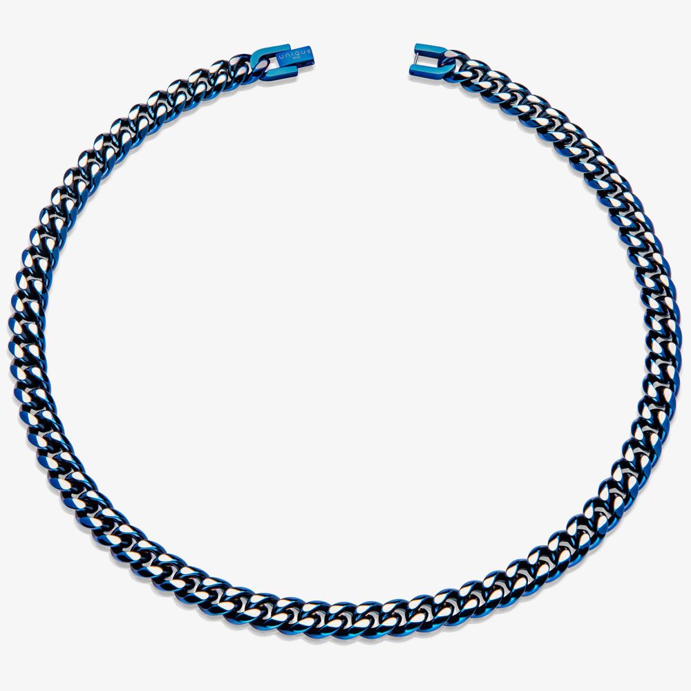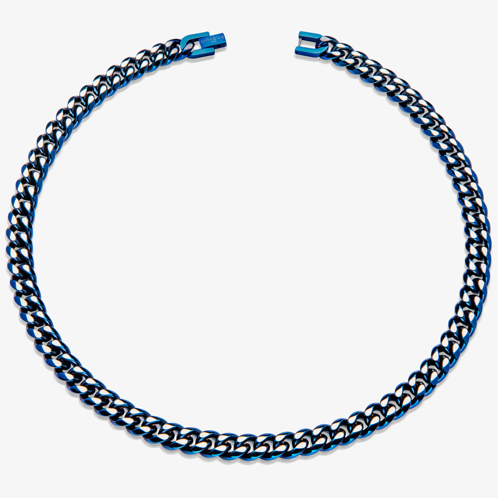 Crafted with precision, this bracelet boasts a radiant blue tone and a meticulously polished curb chain design. Elevate your style with this classic and versatile piece, perfect for any occasion.