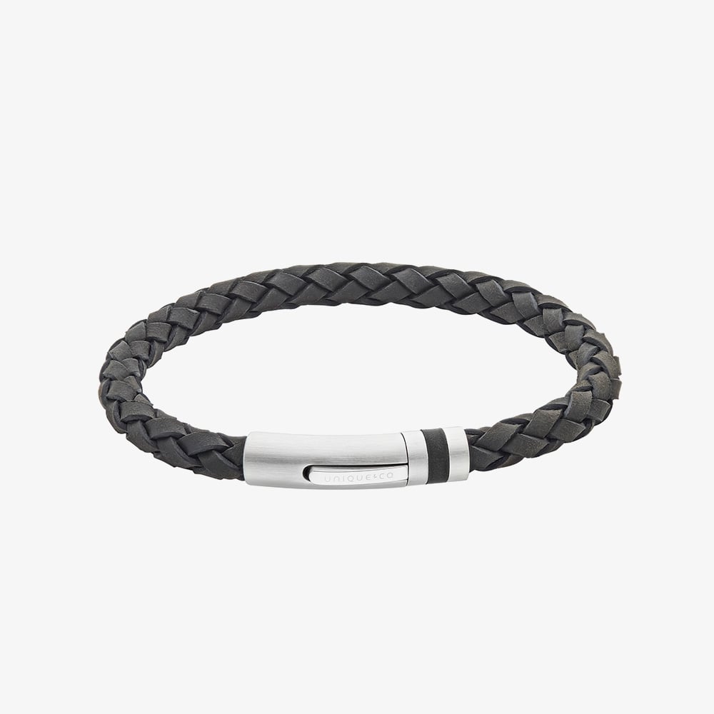 Bold and contemporary, this men’s matte black braided leather bracelet from Unique delivers effortless edge. The rugged leather is paired with a polished stainless steel clasp, creating a striking contrast that enhances its modern, masculine appeal. A versatile statement piece, perfect for everyday wear or as a standout gift.