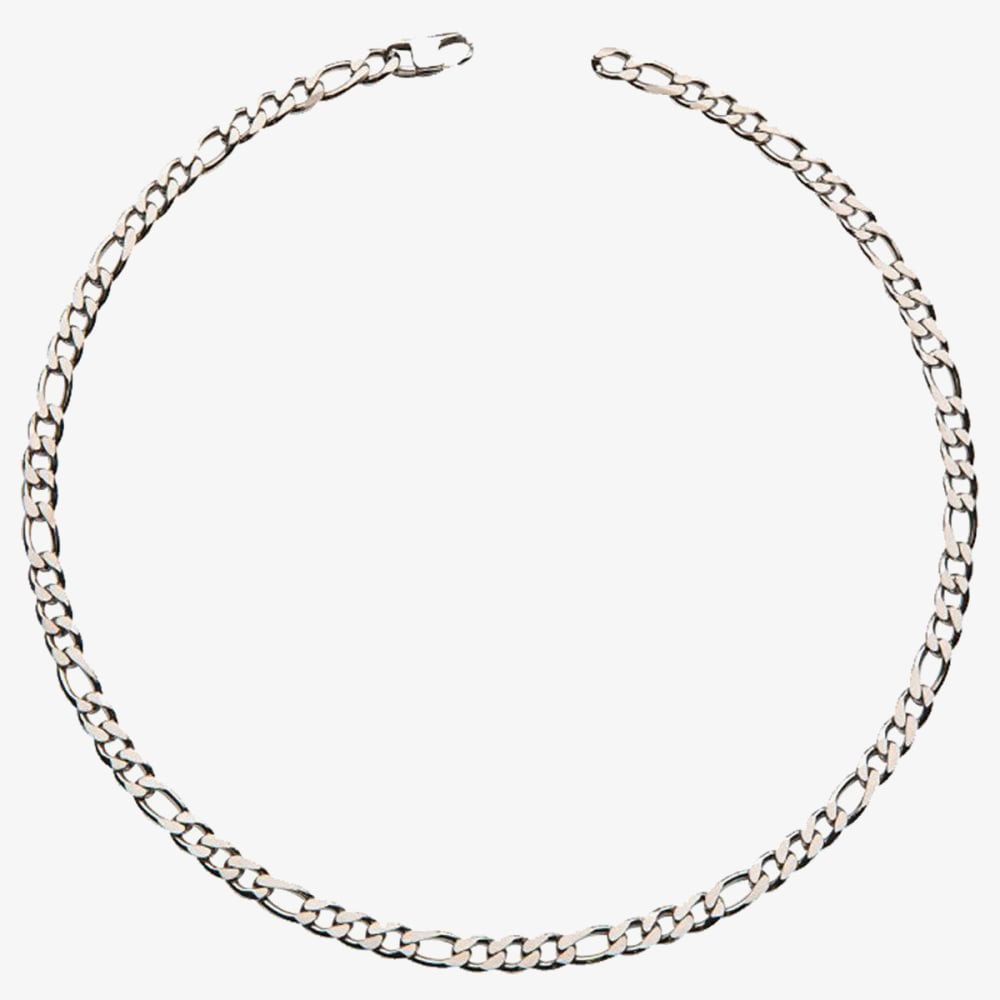 A stainless steel Figaro chain necklace with a matte polished finish. This classic chain design features alternating link sizes, combining elegance and durability with a modern, refined matte texture. A versatile and stylish accessory, perfect for both casual and formal wear.