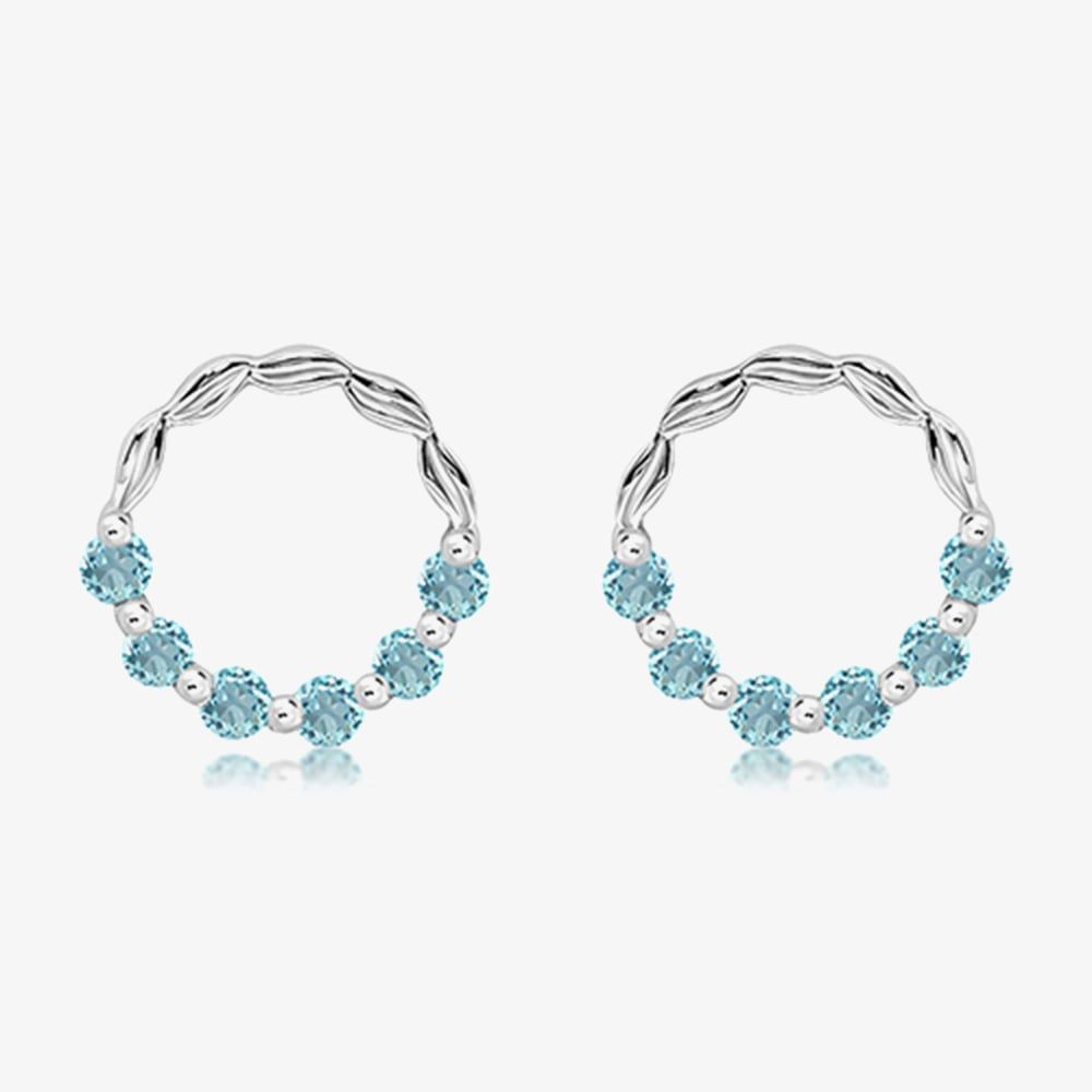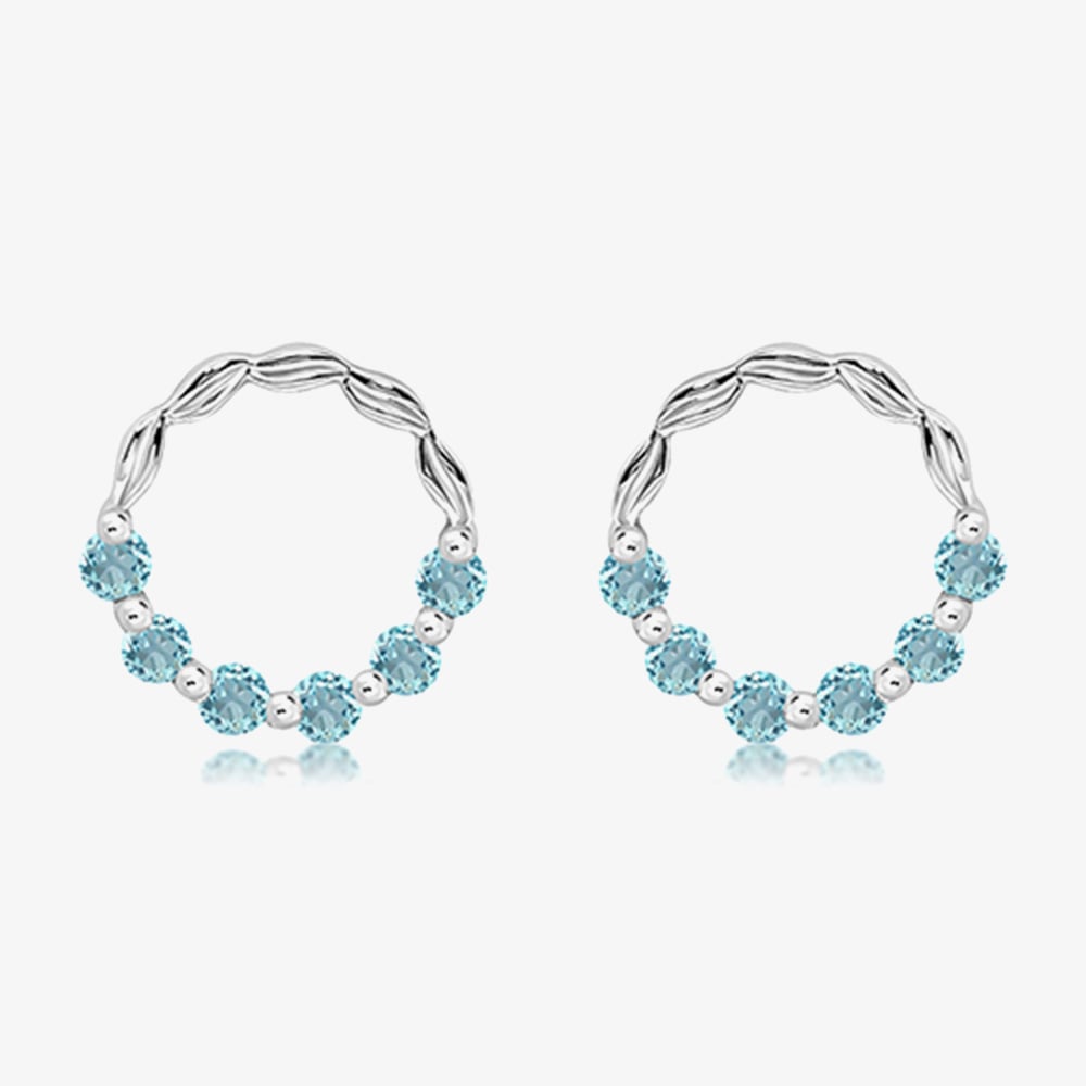 Unique Sterling Silver Blue Topaz Open Circle Stud Earrings ME-1055BT