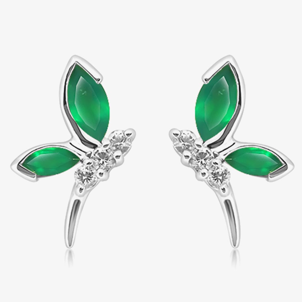 Sterling Silver Green Onyx Dragonfly Stud Earrings ME-1049GX