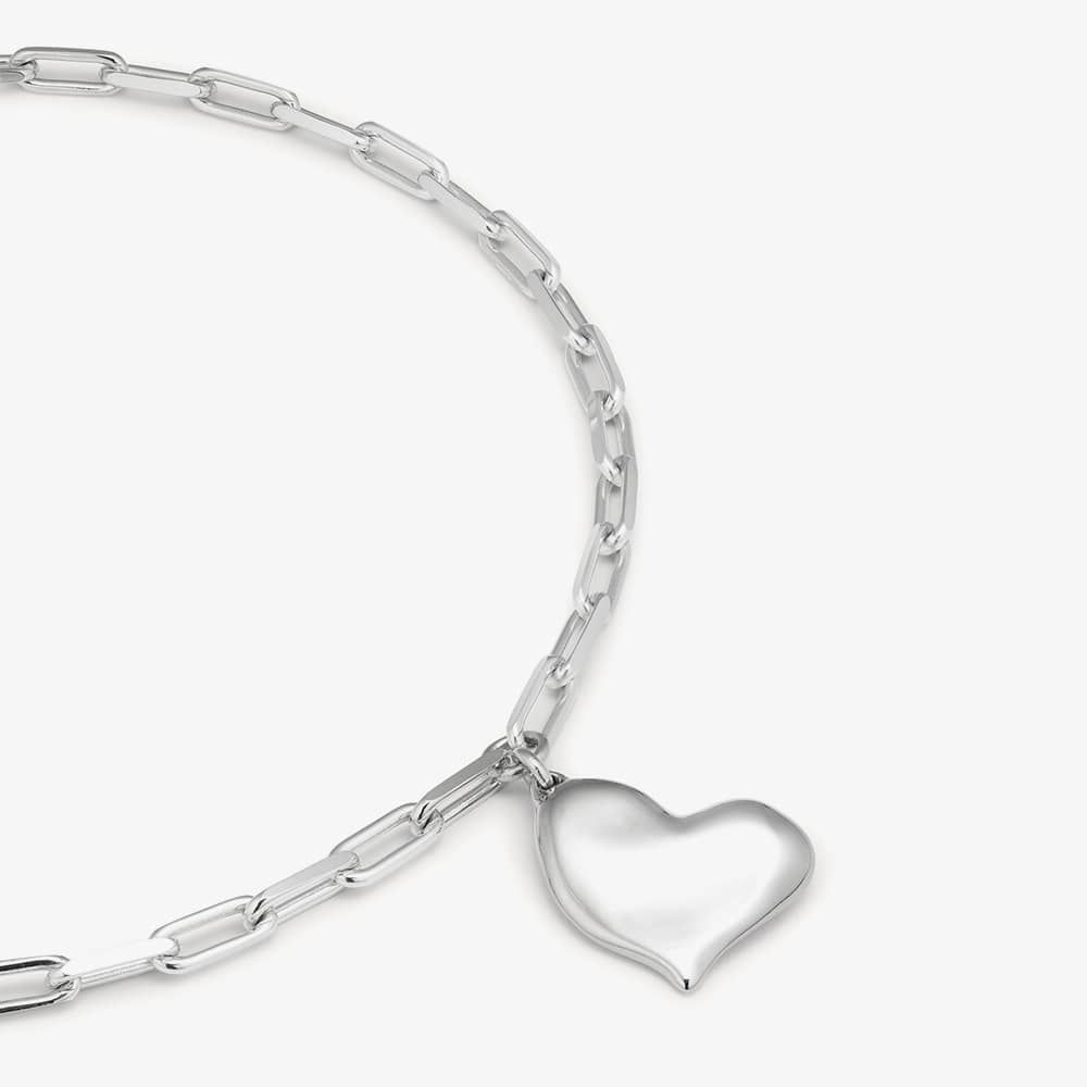 The Heart Beat necklace showcases a series of medium-sized paper chain links, each adorned with the brand's signature heart emblem. Handcrafted in Spain from a silver-plated metal alloy, this piece harmonizes effortlessly with other selections from the Emotions collection.