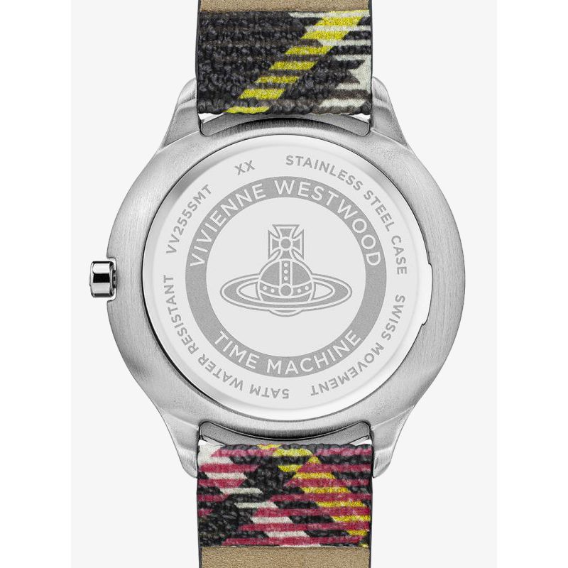The Vivienne Westwood Ladies Elcho Tartan Strap VV255SLMT watch combines a 41mm round shaped stainless steel case and three colour fabric strap with a traditional buckle. It has a silver analogue dial which is protected beneath mineral crystal glass. Power is generated by the quartz movement. This model also has a water resistance of up to 50 metres.