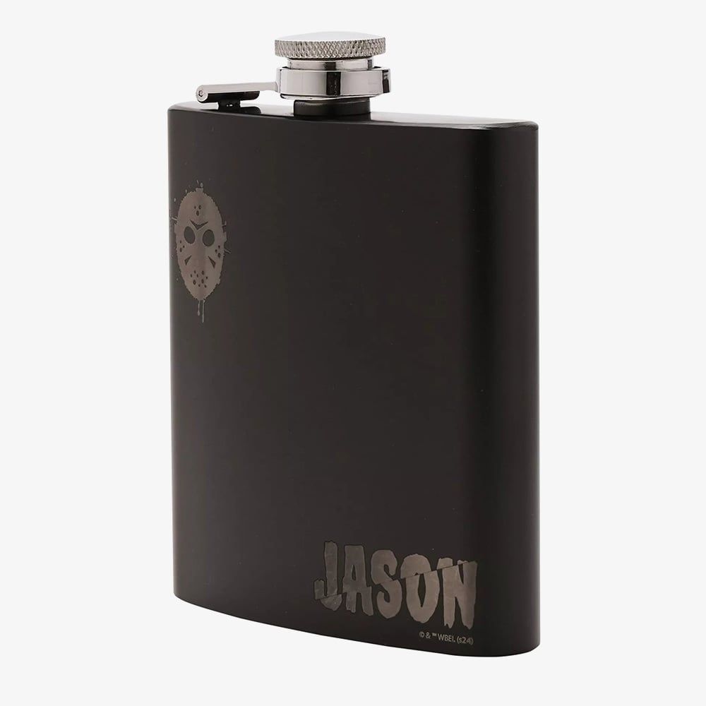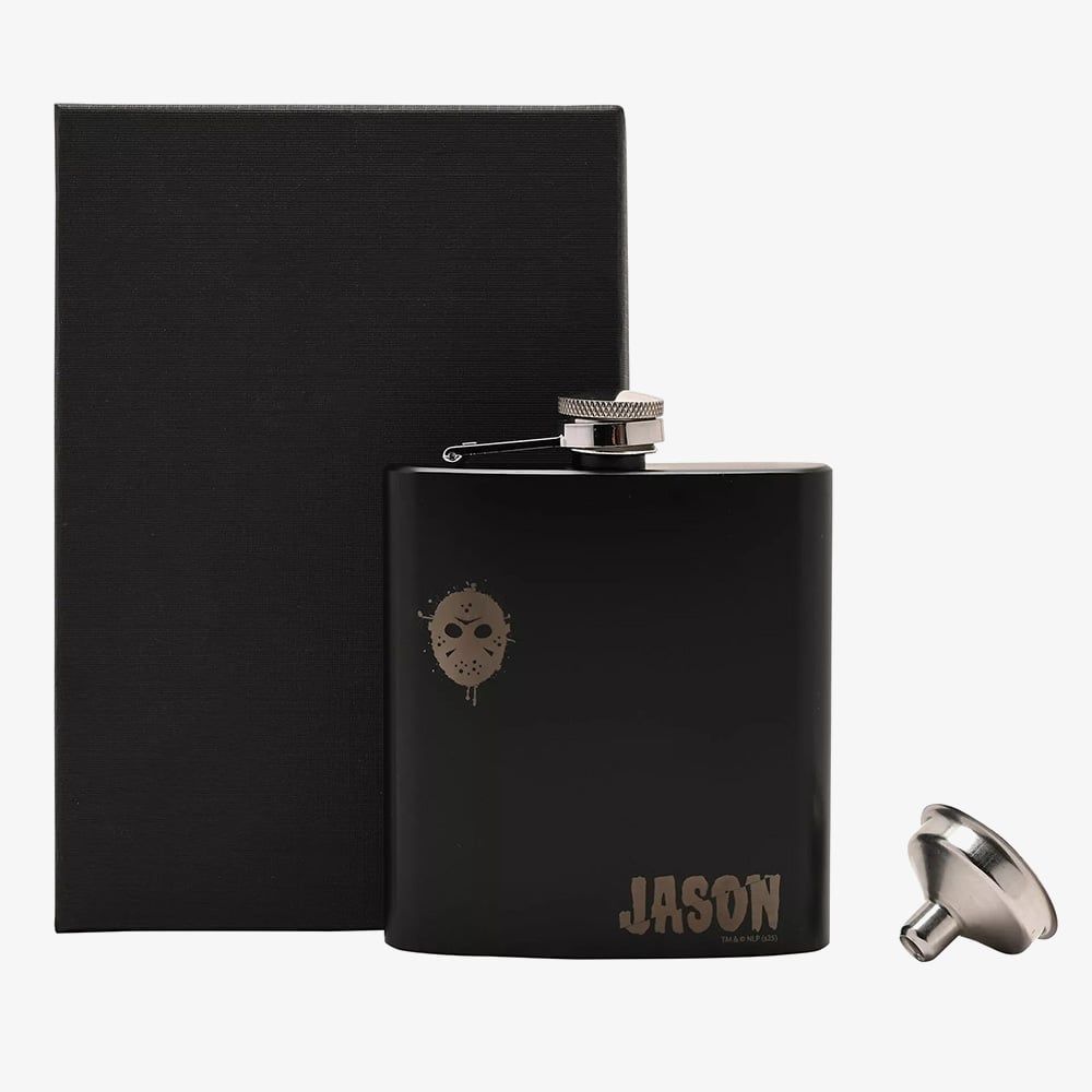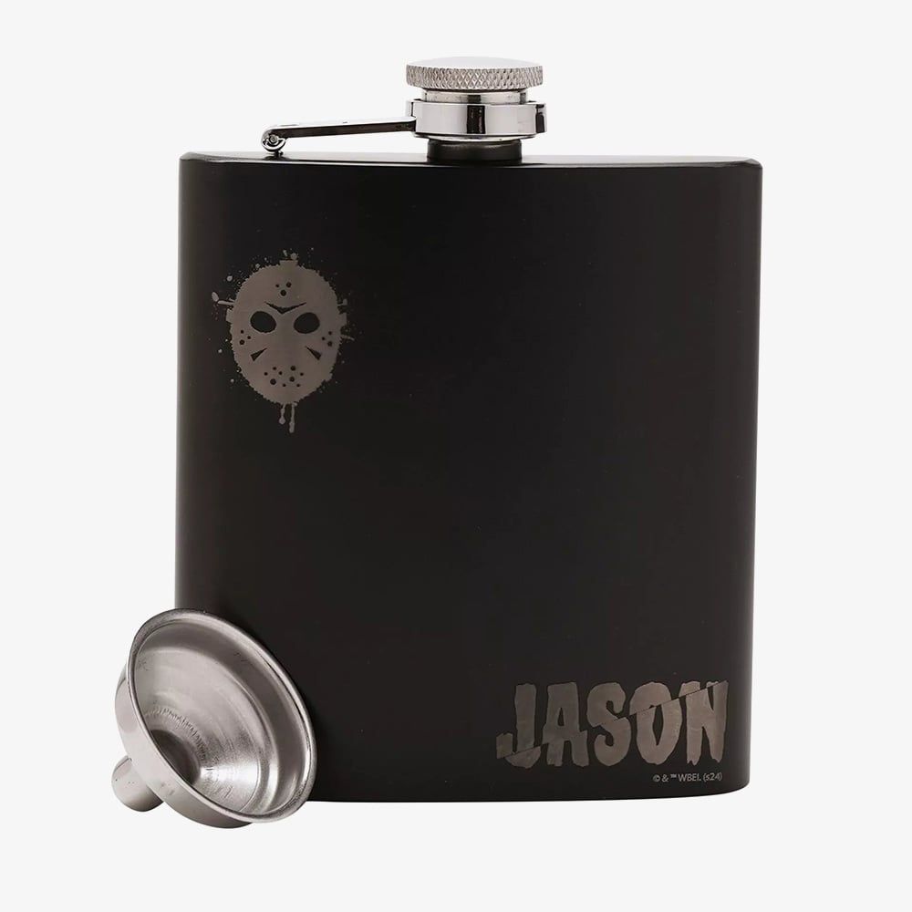 Celebrate horror movie fandom with this Warner Bros 6oz Matt Black Hip Flask, featuring ‘JASON’ engraving in tribute to the iconic Friday the 13th villain. Made from durable black metal, it comes with a silver funnel for easy filling and is perfect for carrying your favourite drink. Presented in a sleek black gift box, it’s ready to gift to movie fans.