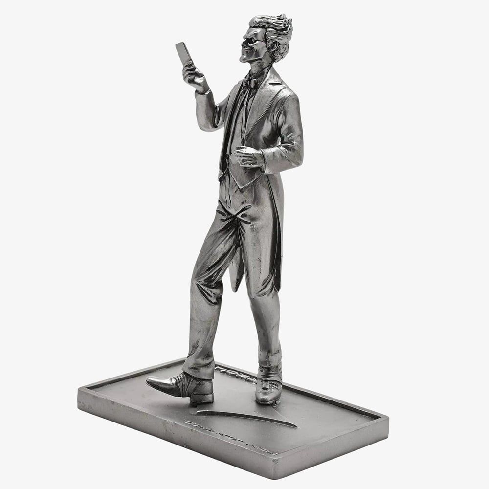 Standing tall and effervescent, this official Warner Bros Joker Figurine is the perfect representation of Gotham's most infamous villain. With his sinister smile and tailored suit, this detailed resin model authentically captures the Joker’s unpredictable madness and chaotic energy.
