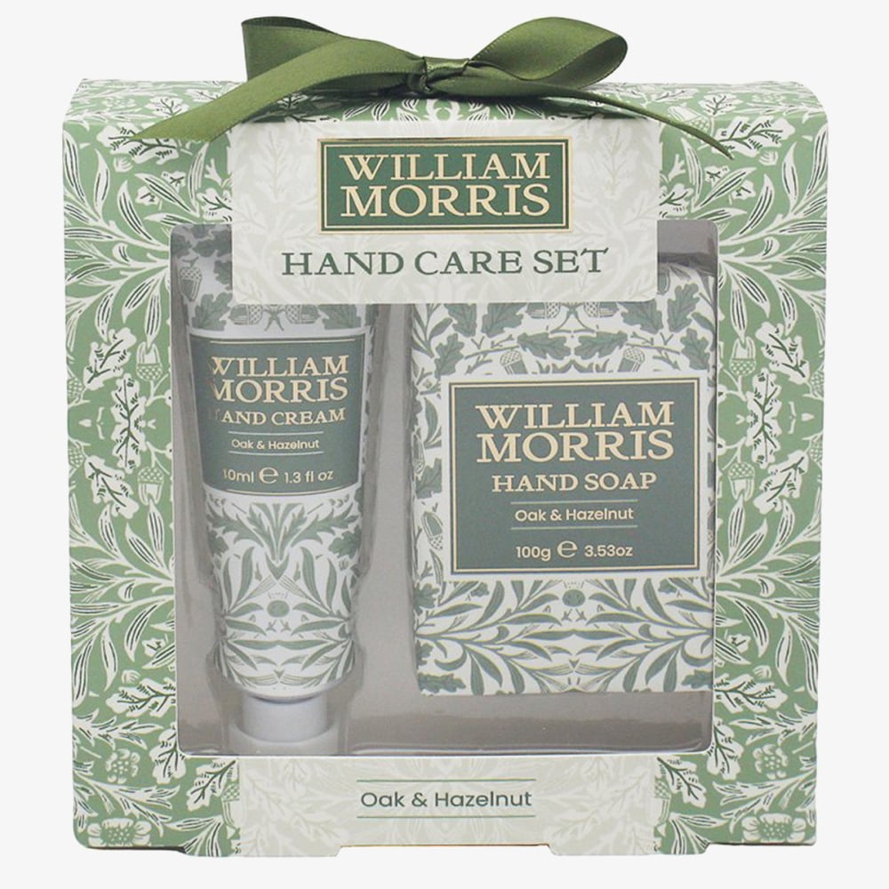 Give the gift of luxurious pampering with the William Morris hand care set. Detailed with the iconic Acorn design, this set includes a hand cream and hand soap with an inviting oak and hazelnut scent to celebrate nature's treasures. Perfect for fans of William Morris designs or those who deserve a little pick me up.
