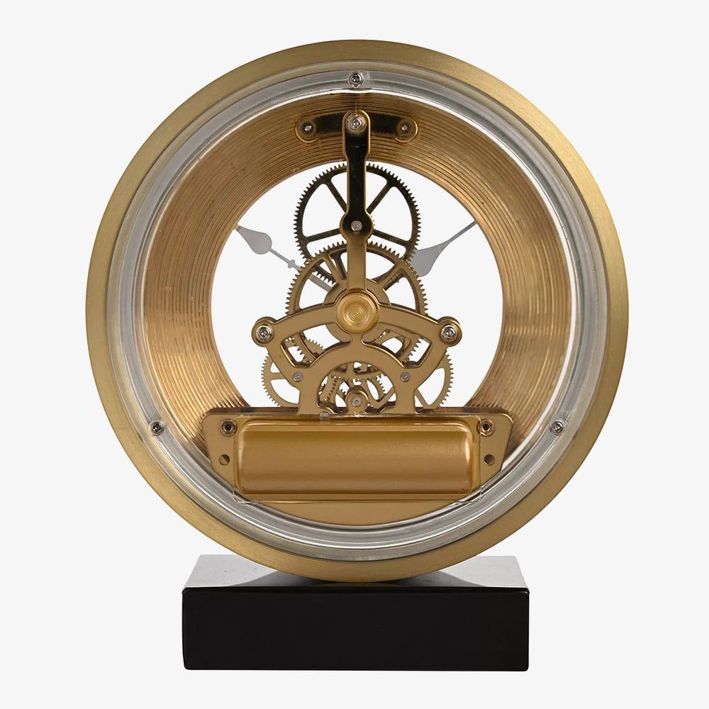 WM Widdop Round Skeleton Gold Clock W2939